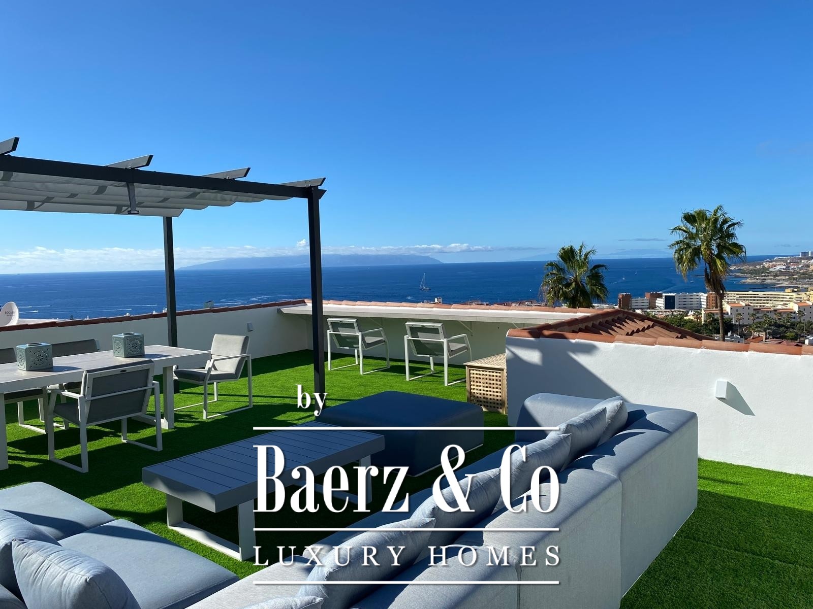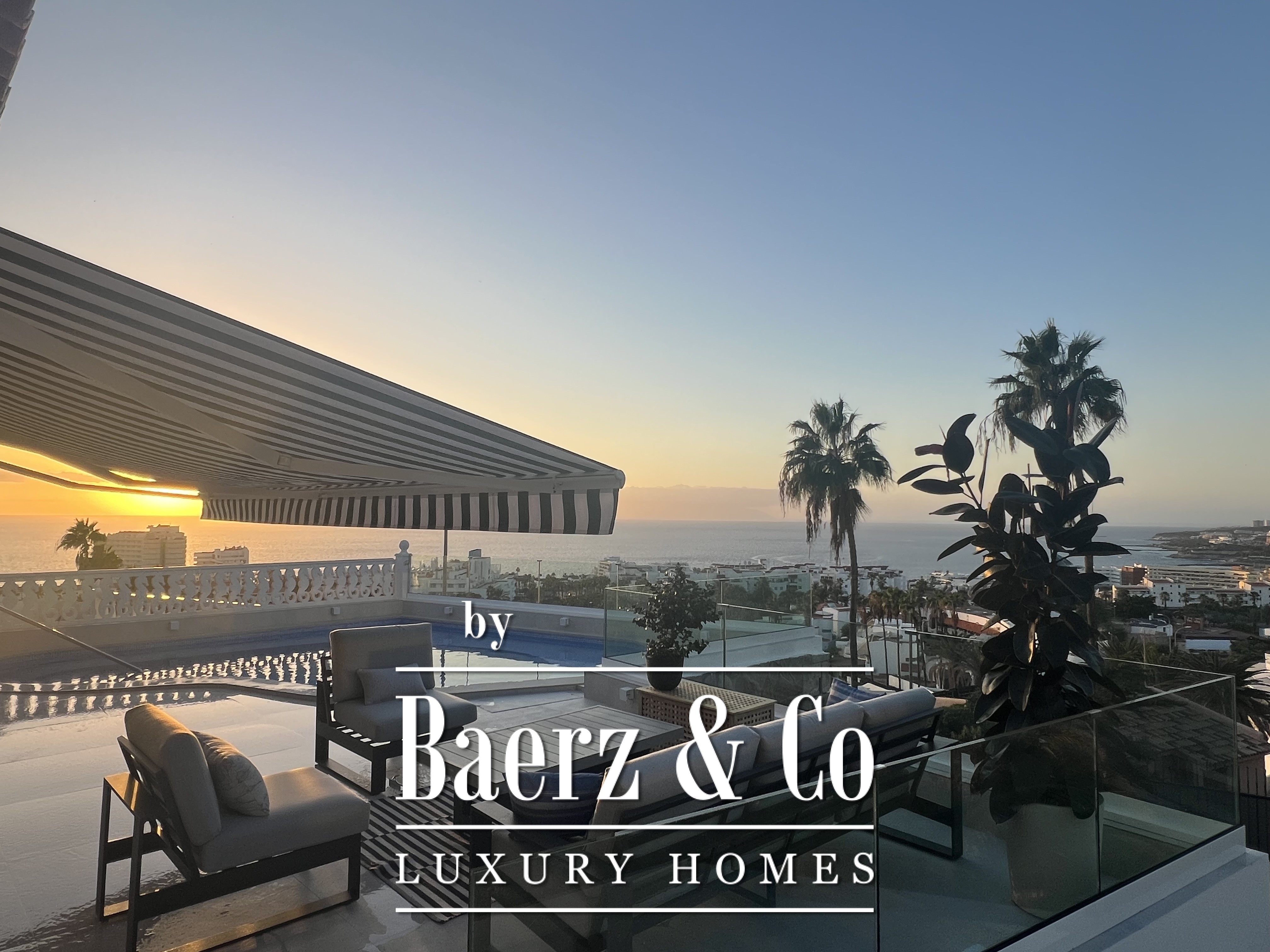 Essential features include air conditioning, double glazing, fitted wardrobes, an alarm system, and a private garage for two cars. The rooftop terrace, at 85 m², offers elevated privacy, an ideal setting for gatherings or quiet reflection above the coastline. Nearby, Costa Adeje’s beaches, international school, golf course, and luxury shopping are within easy reach, with Tenerife South airport a brief drive away. This luxury villa for sale in San Eugenio is a statement of comfort and position for those who value space, privacy, and an assured connection to the island’s finest offerings.