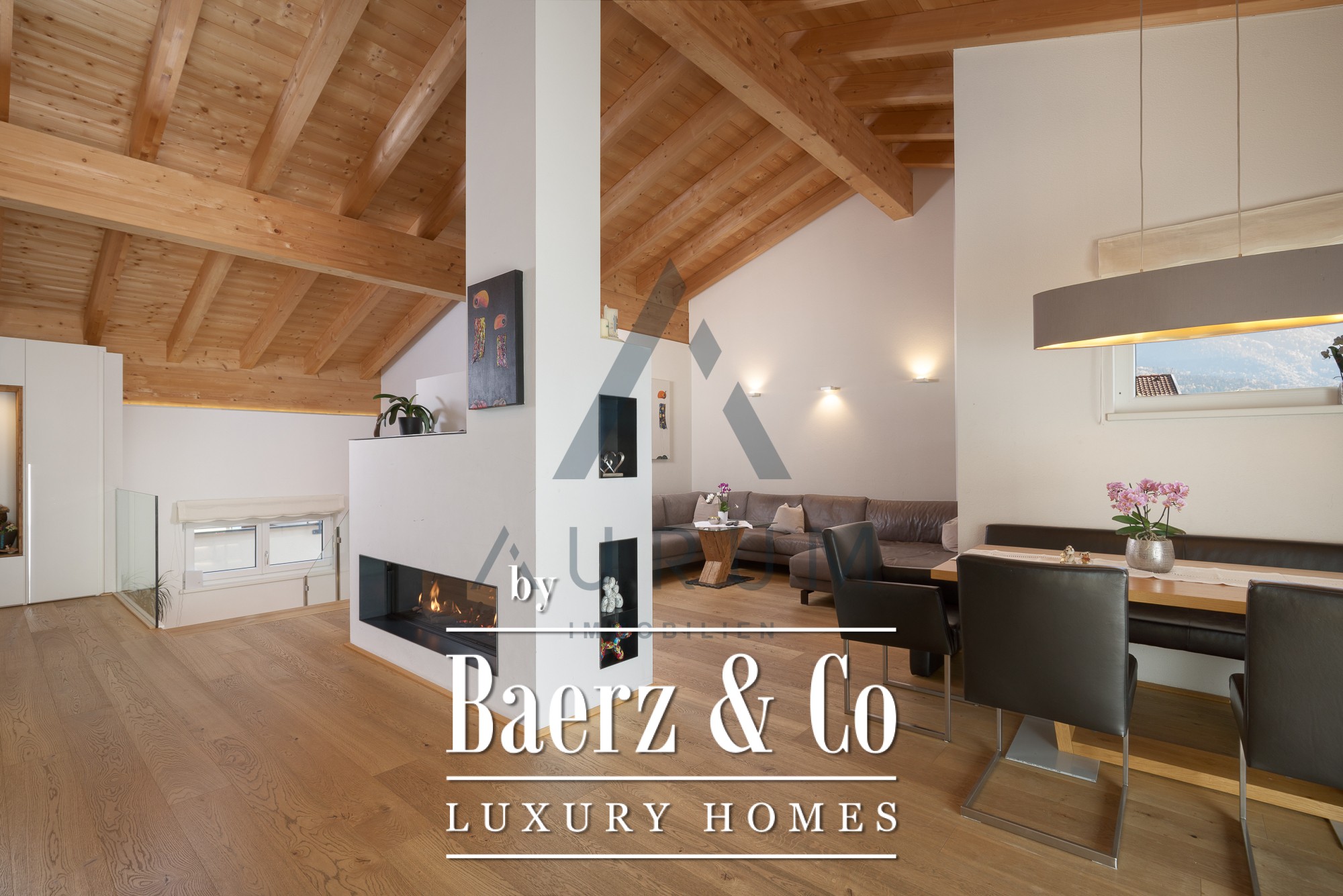 Apartment Schwoich with panoramic mountain views introduces a quiet grandeur shaped by light, volume, and alpine clarity. This 169 m² residence spans the second floor and attic, framing Tyrolean landscapes through expanses of glass and a wraparound terrace of 86 m². Upon entry, a sense of order prevails—oak floors lead to a master suite, spacious dressing room, en-suite bathroom, and direct balcony access. A second bedroom and bathroom complete the private lower floor.