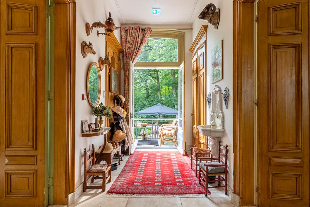 The landscaped estate extends to 5 hectares and borders the private Vegelin woodland, including a large pond. The grounds feature a terrace, a historic tea pavilion dating from circa 1900, a waterside gazebo and a carriage house with plans for conversion into additional guest accommodation or residential space with a separate driveway.