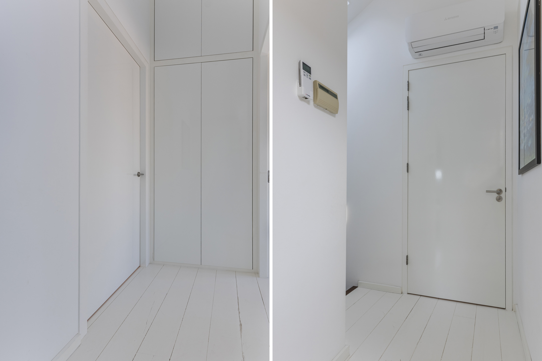 The spacious living area benefits from abundant natural light, underfloor heating, and a gas fireplace. The living room connects openly to the kitchen-diner but can be separated by elegant pivot doors. A practical cellar provides additional storage, and the unique raised room (opkamer) offers access to the first floor.