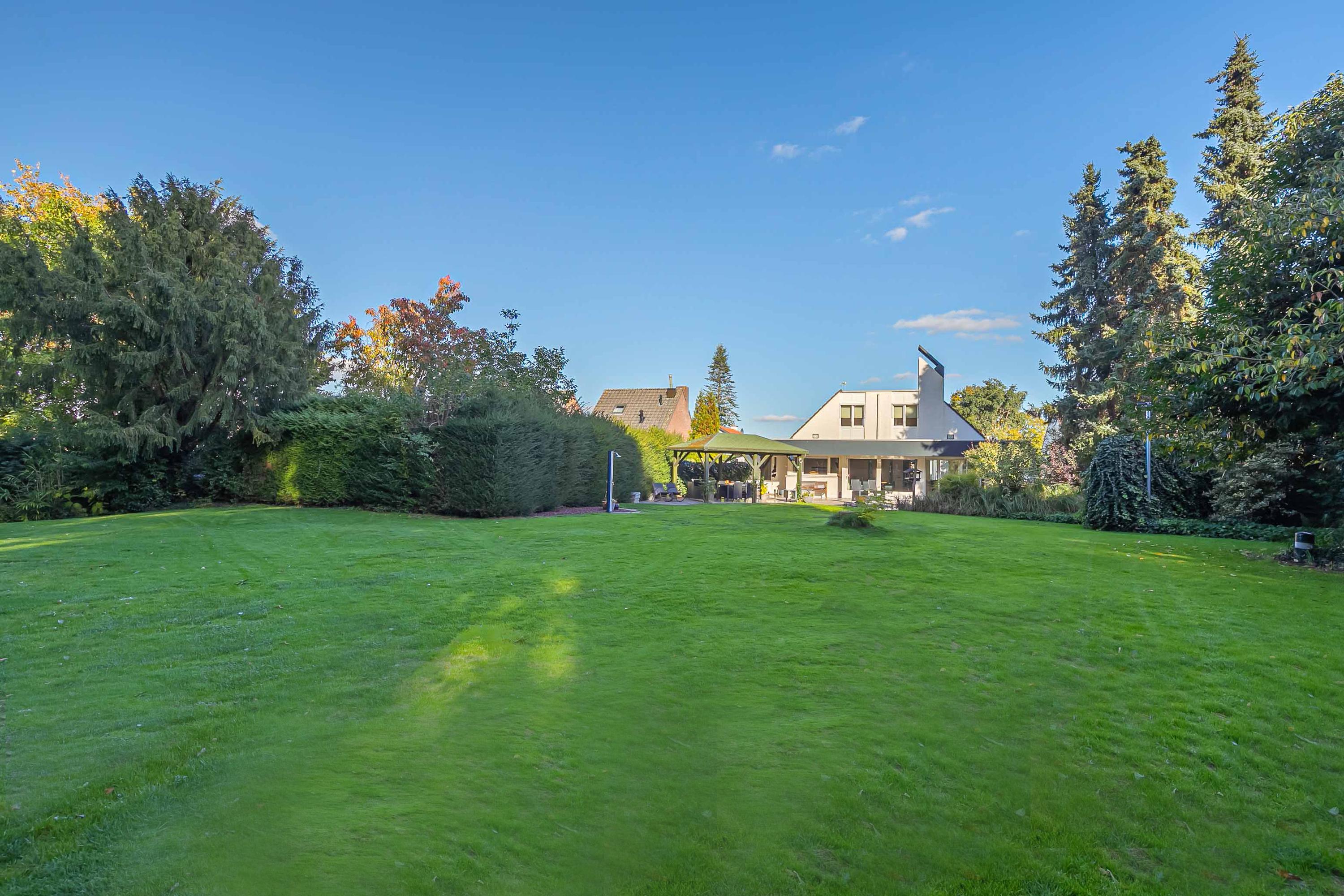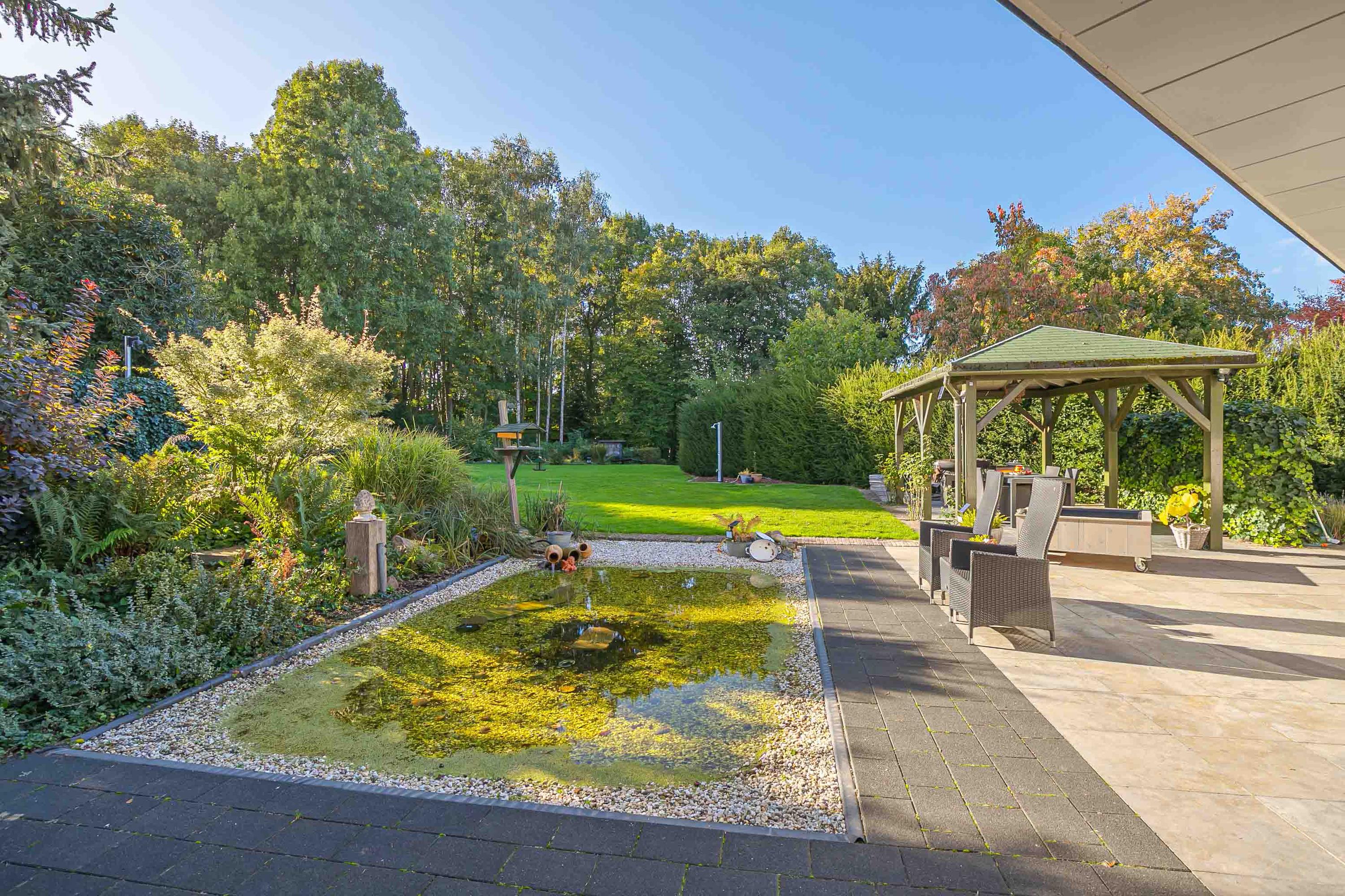 Riante, parkachtige tuin waar men in alle rust kan genieten van optimale privacy. Er zijn diverse zitgedeeltes gecreëerd, waarvan één met overkapping (ca. 14m²). Ook is er een vijver aangelegd in de tuin. Achter de tuin ligt een prachtig bos van ca. 9858m².