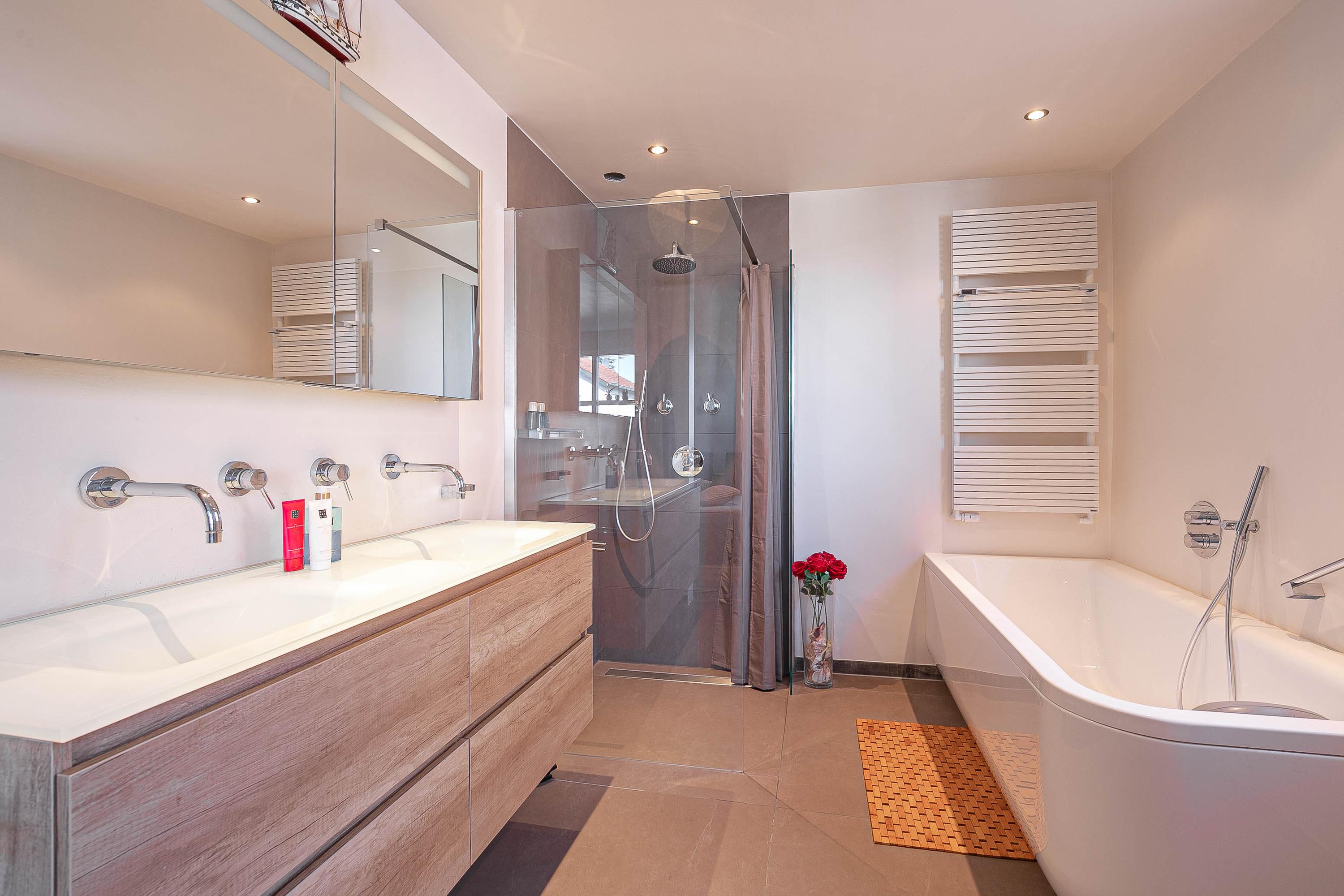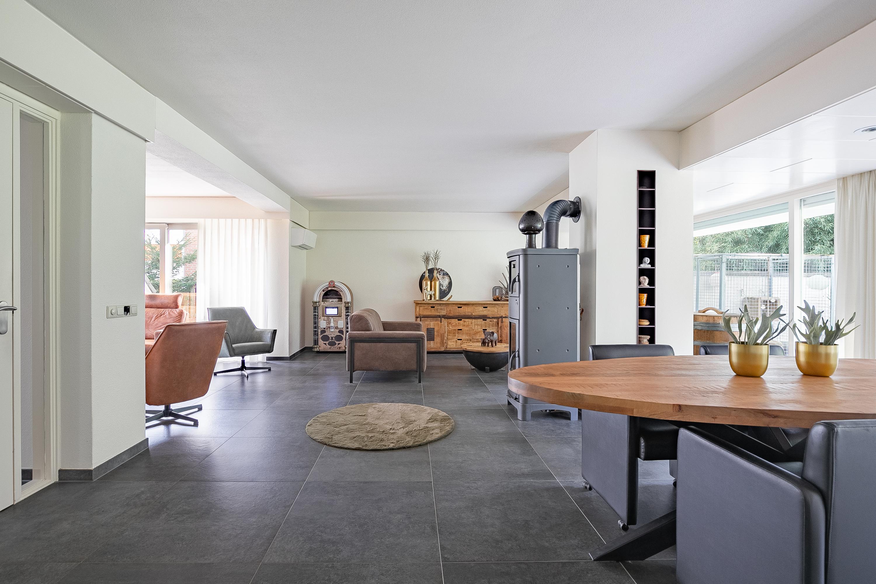 - In de woonkamer bevind zich een sfeervolle, moderne (voldoet aan de Eco design 2022 Norm) cv-houtkachel 23 kw, met 4 kw stralingswarmte en 19 kw waterzijdig welke is aangesloten op een 1000 liter hygiënevat waar de cv-installatie zijn warm water uithaalt t.b.v. vloerverwarming en centrale verwarming. Er bestaat zelfs de mogelijkheid om ook het tapwater hier mee te verwarmen. Tevens is het vat d.m.v. directe zonne-energie of warmtepomp op te warmen zodat men helemaal geen gas meer verbruikt, momenteel is het gasverbruik dan ook tussen de 500 en 900 m3.