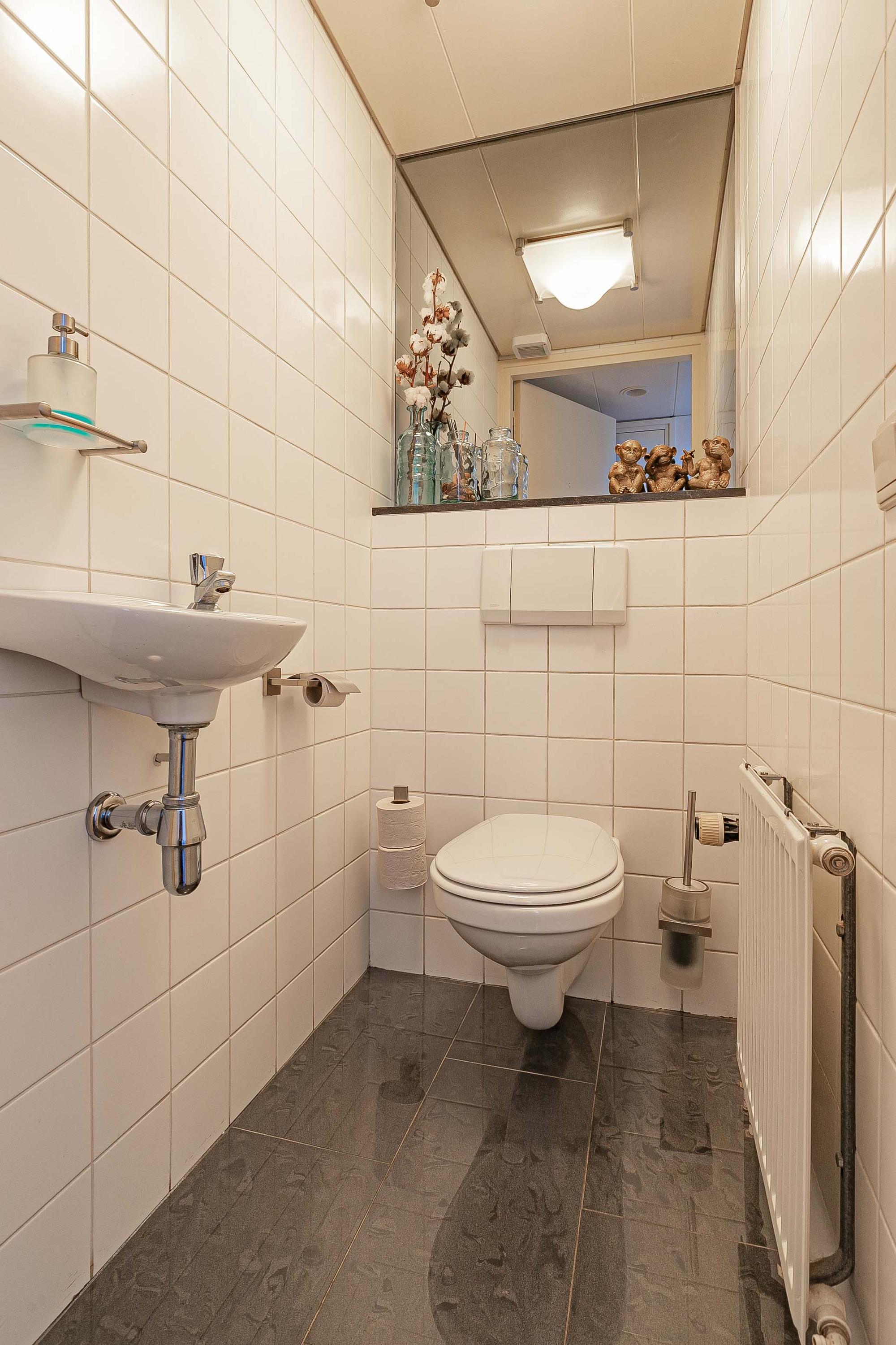 Entree/hal met toegang tot meterkast, toilet met fonteintje, garderobe, slaapkamer en trapopgang naar de eerste verdieping. Riante woonkamer (ca. 65m²) voorzien van een houtkachel en twéé schuifpuien. Eén schuifpui geeft toegang tot het terras aan de zijkant van de woning. Dit terras is voorzien van een elektrisch zonnescherm. De andere schuifpui geeft toegang tot de tuin. Gesloten keuken (ca. 10m²) recent gemoderniseerd en voorzien van de navolgende inbouwapparatuur: keramische kookplaat, moderne afzuigkap, stoomoven, combi-oven, koelkast, diepvries, vaatwasser en spoelbak met Quooker-kraan. Via de bijkeuken (ca. 5m²) is er toegang tot de tuin en kelder. De bijkeuken is voorzien van een vaste wastafel. Middels de hal te bereiken slaapkamer (ca. 18m²) op de begane grond met open verbinding tot de moderne badkamer (ca. 8m²) met ligbad, inloopdouche, tweede toilet en dubbele wastafel.