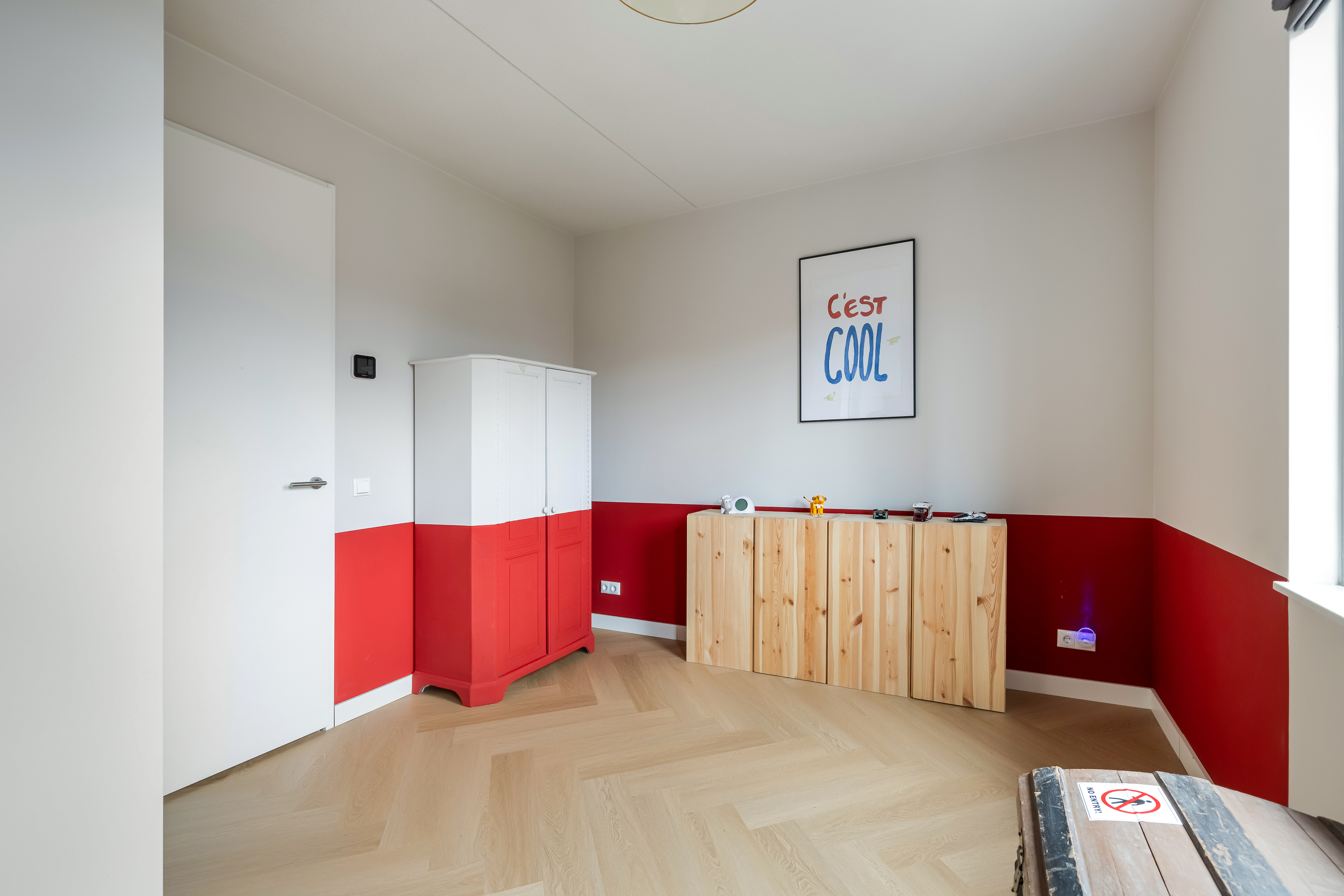 De leefverdieping voelt ruim en huiselijk tegelijk. Je kunt hier samen zijn zonder elkaar steeds te kruisen. Het kookeiland vormt het middelpunt, de eettafel sluit er logisch op aan en de voorkamer is in verbinding en toch ook niet. Als je binnenkomt begrijp je wat we bedoelen. Op de eerste verdieping herhaalt dat gevoel zich. Een fijne zitkamer waar kinderen kunnen spelen, waar je een boek leest of even tv kijkt. Je zit hier trouwens heerlijk in het zonnetje. Ook hier zijn de ruimtes multifunctioneel en flexibel. Er is zelfs een aansluiting voor een wastafel, mocht je hier ooit een pantry willen creëren.
