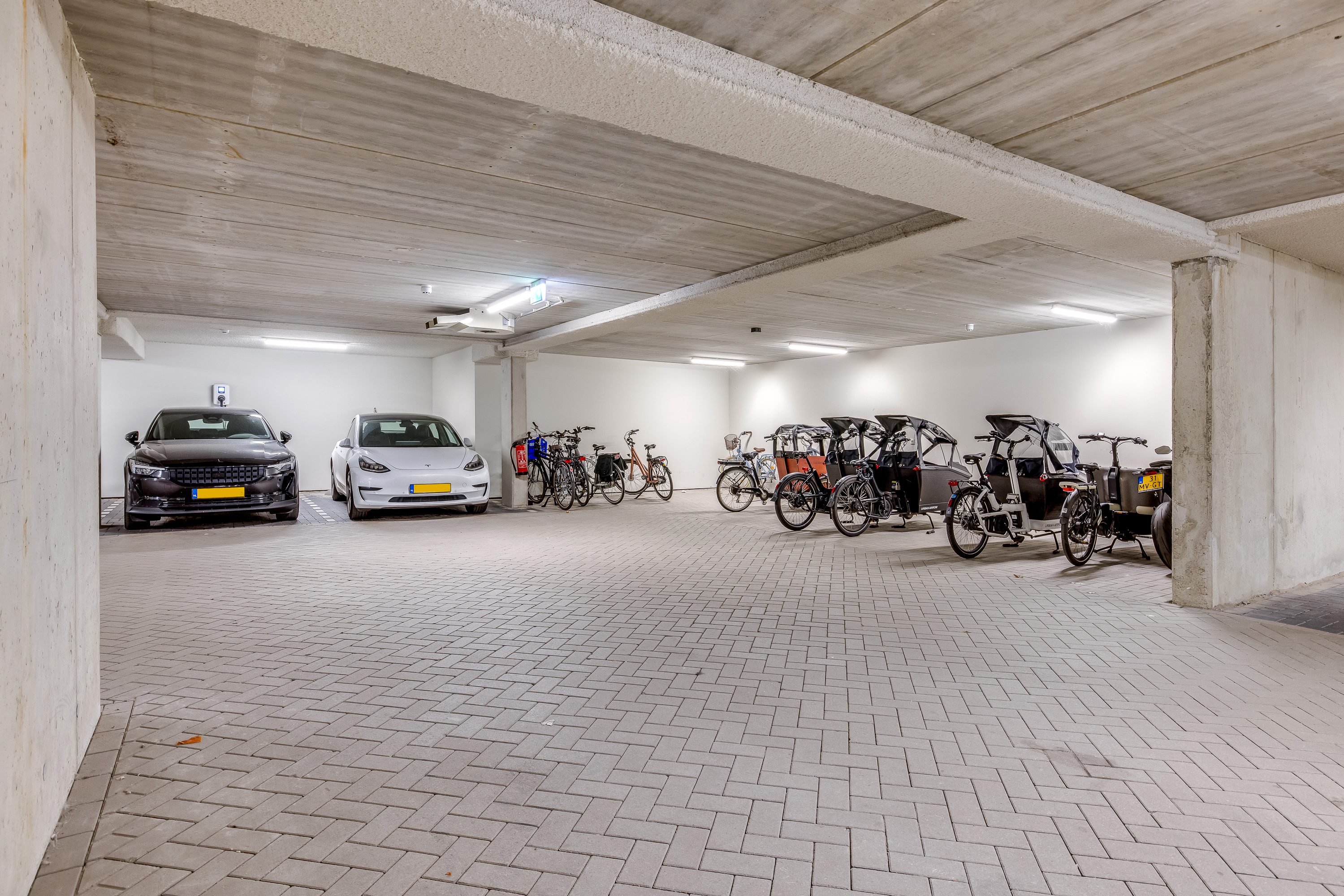 In de onderbouw bevindt zich de parkeergarage met een eigen parkeerplaats en een ruime berging. Ook is er plek om een bakfiets veilig te stallen.