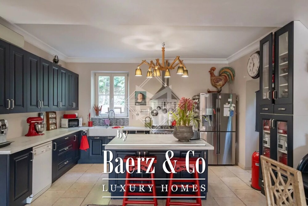 Villa Valbonne commands an exceptional position in the heart of one of the Côte d’Azur’s most celebrated villages. This villa Valbonne offers 230m2 of living space, enhanced by 50m2 of terraces and framed by a quietly dominant view over the village and historic monuments. Entering the property, the rhythm of life unfolds across two generous living rooms, where light and understated finishes create an atmosphere of both conviviality and retreat. The kitchen, seamlessly opening onto the dining area, forms a central space for gathering, leading easily to a superb covered terrace and the garden.