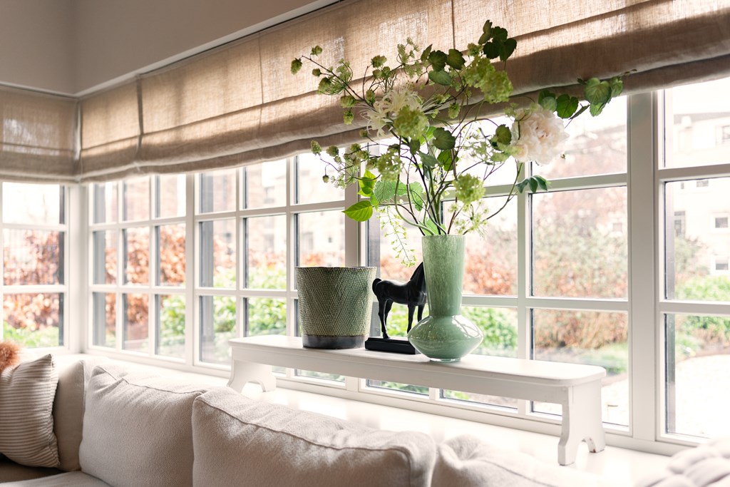 The villa comprises four bedrooms and one bathroom, balancing historical details with modernised elements like air conditioning in the main bedroom and recent updates including a renewed kitchen and updated façade paintwork. Each space is finished to a high standard with considered materials, including new tiling, double glazing, and a harmonious blend of wood and steel accents in the windows.