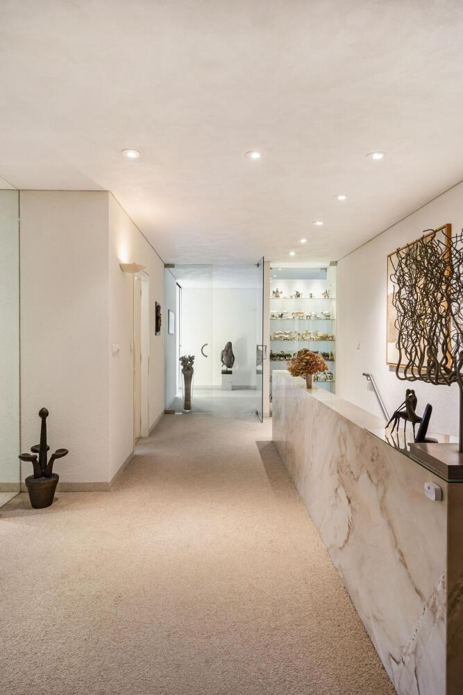 This spacious basement includes a large garage with space for two cars, an electric door, and a charging station for an electric vehicle. There is also a beautiful wine cellar, several storage rooms, a technical room housing the heat pumps for both the house and the indoor pool with jet stream. Residents can access the house directly from the basement.
