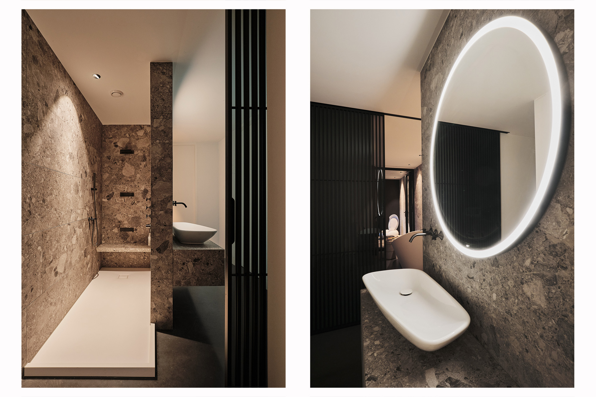 Wat dit project bijzonder maakt, is dat woning en presentatieruimte weliswaar dezelfde ontwerpmentaliteit delen, maar bewust zijn ontworpen als twee zelfstandige entiteiten. Ze functioneren volledig onafhankelijk van elkaar, met elk hun eigen karakter, ritme en rol.