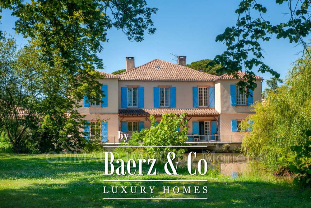 Inside, the manor unfolds with an entrance hall, a living room opening onto a terrace overlooking a tranquil pond, an office, a fully equipped kitchen, a dining room, and a wine cellar. Upstairs, a double living room and en-suite bedrooms allow for a dedicated guest wing. The guest houses, each with a kitchen, living room, and two bedrooms, extend hospitality with privacy in mind.