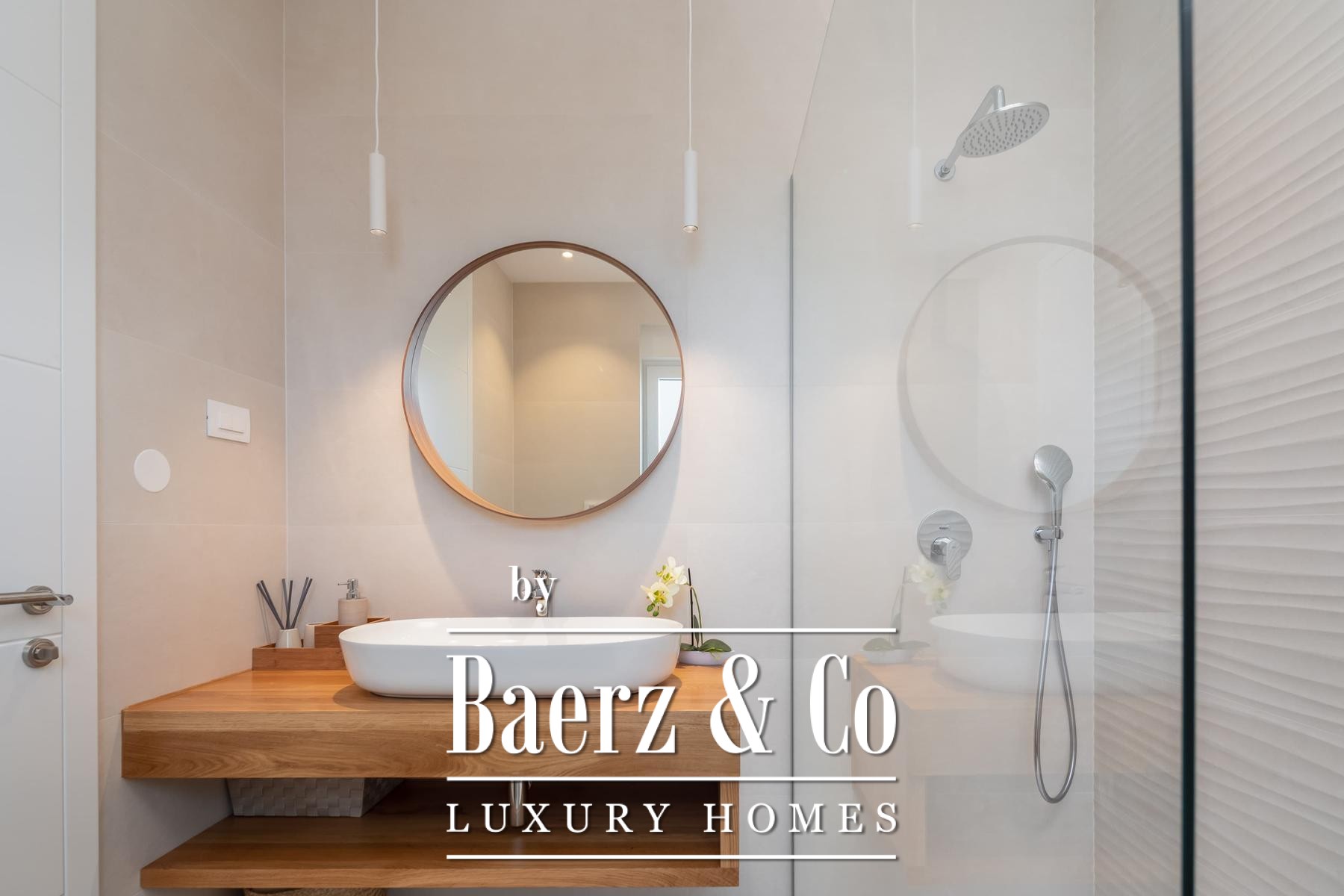 a terrace with a sea view.The villa is superbly equipped, and we would like to highlight the following: underfloor heating connected to a heat pump, an electric car charger in the garage, aluminum joinery, Miele kitchen appliances, central vacuum cleaner, saltwater pool with counter-current swimming system, smart remote home control system, summer kitchen with professional appliances, preparation for solar panels on the roof, electric bicycles...A beautiful garden and sunbathing area surrounds the villa. In addition to the garage, the villa has parking for 3 cars. The microlocation of the villa is excellent, in a very quiet place, yet only 900 meters from the sea.All other information on request.