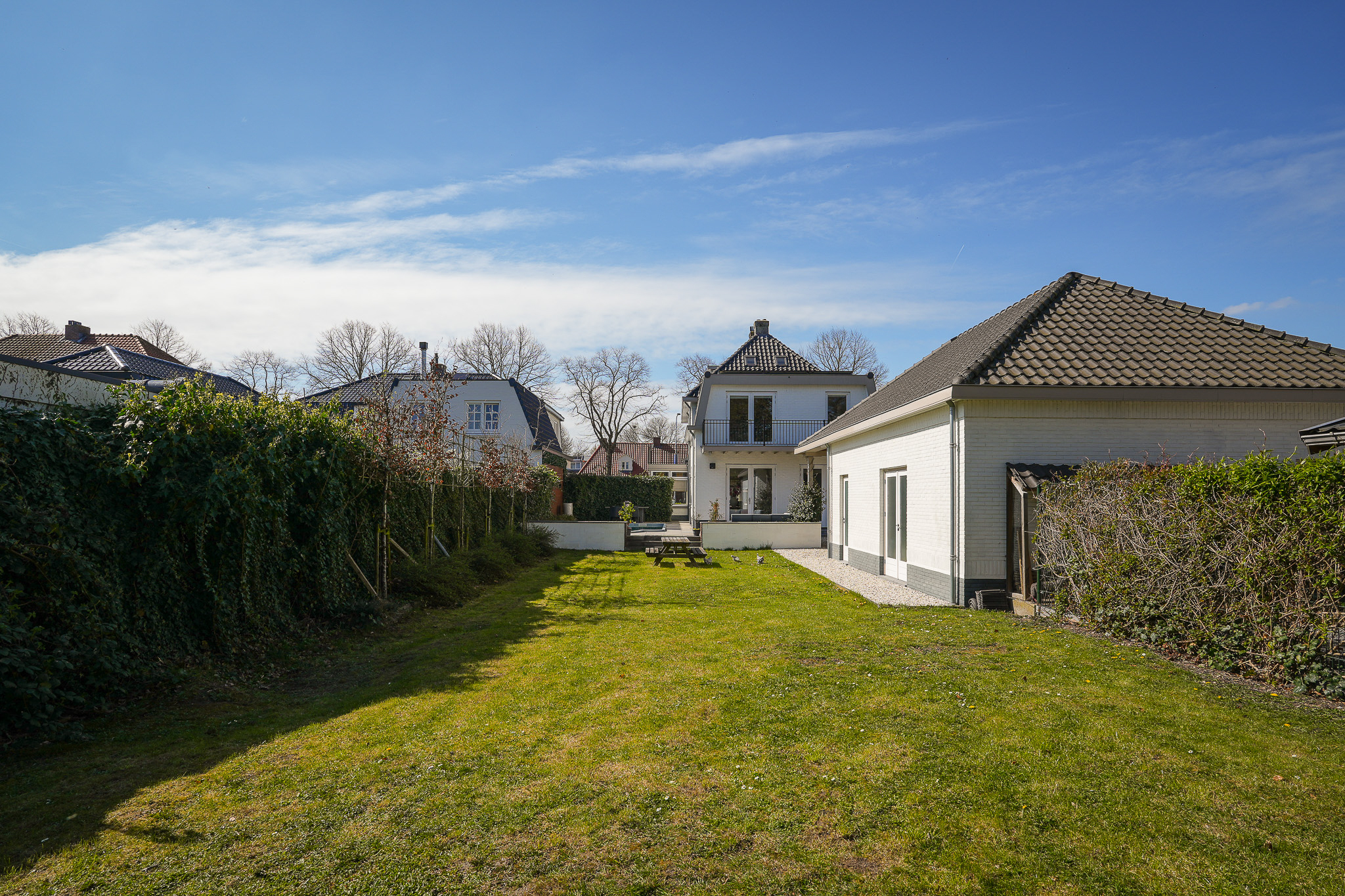 This striking white villa, named Vinkenburg, was built in 1929 to a design by municipal architect De Groot. Characteristic features from the period have been carefully preserved, including the wide overhangs, bay window, conservatory, stained-glass transoms and panelled doors with traditional ironmongery.