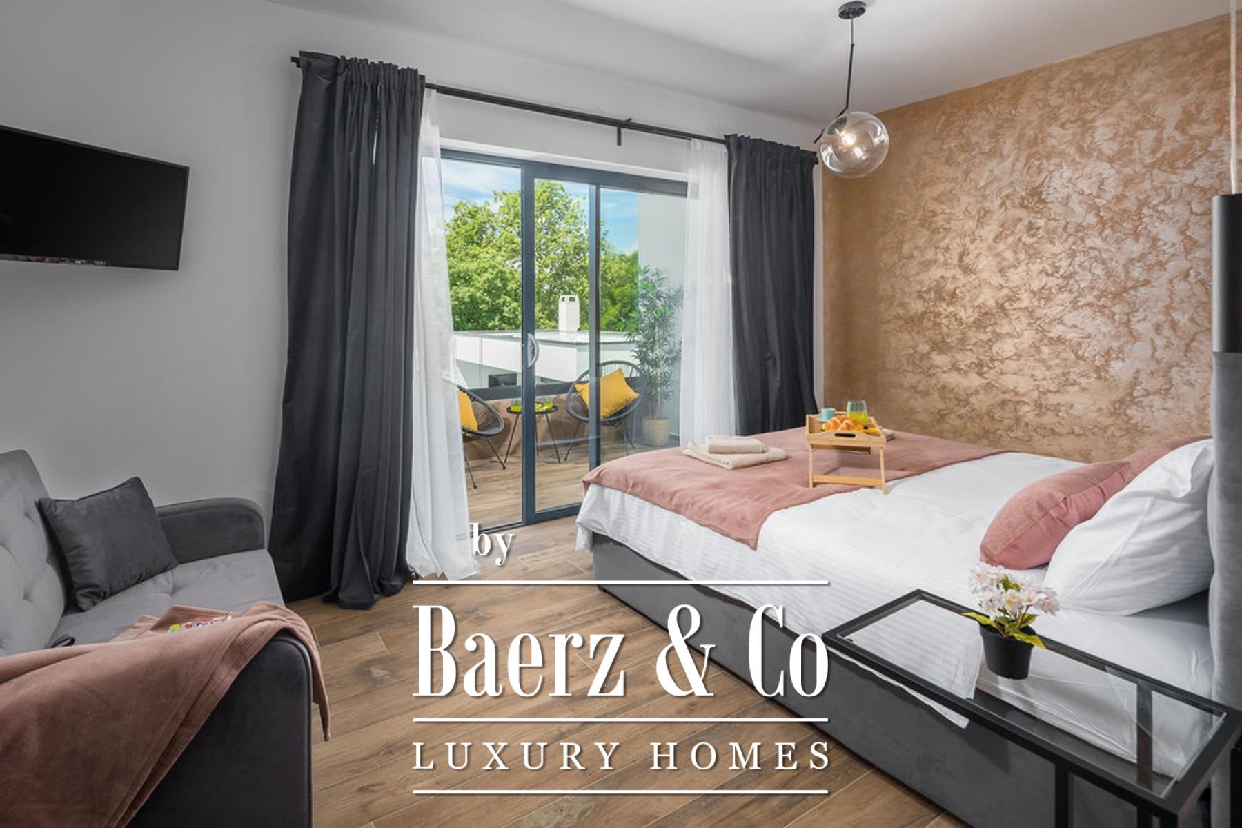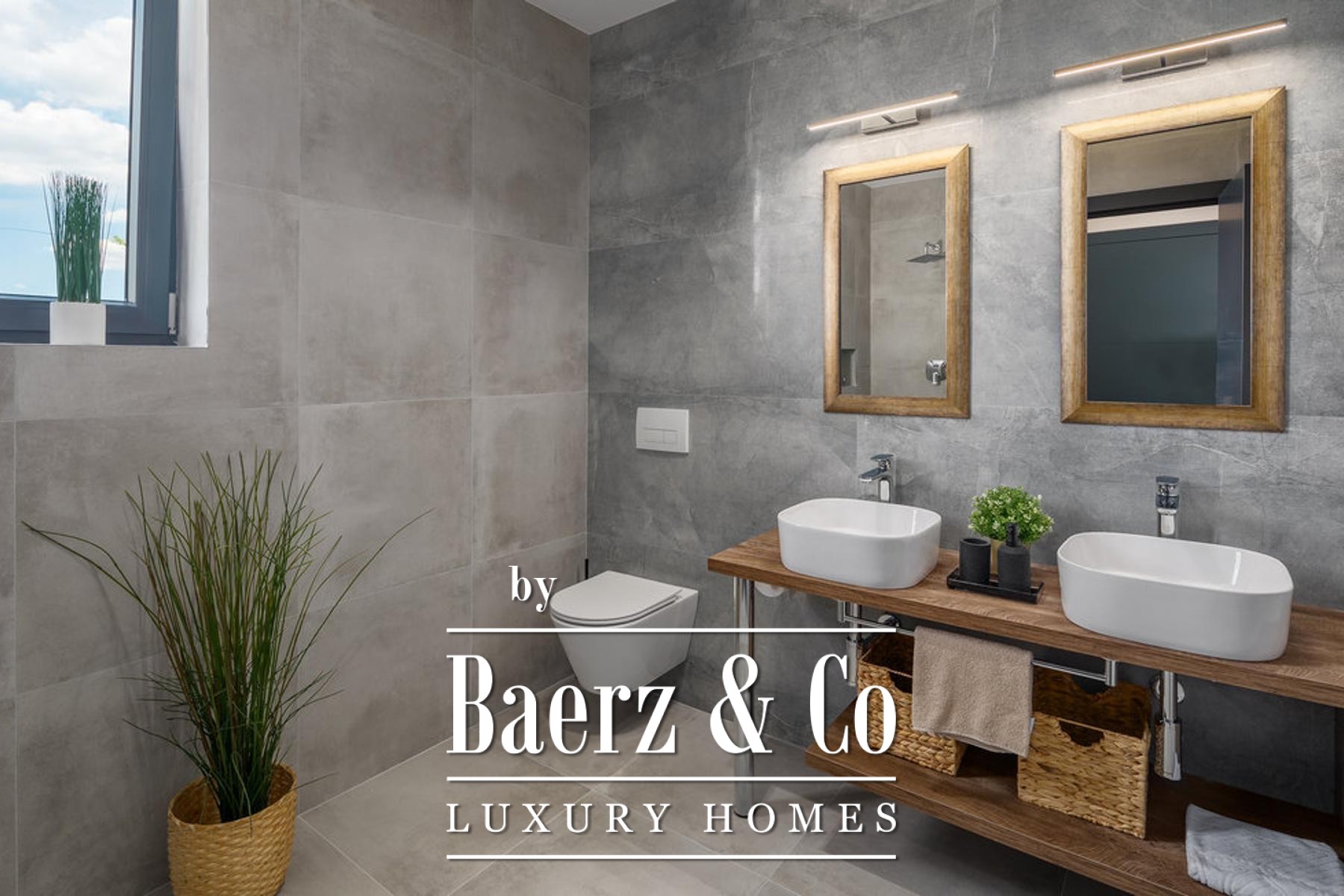 bathroom, and each room has direct access to its own terrace with a beautiful view of nature.On the plot there is a sunbathing area, a heated pool with a heat pump with a total size of 38.50 m2, and a covered area with a barbecue and a place to dine with your loved ones.The best materials and equipment were used for this property, high quality construction, aluminum joinery, underfloor heating system through a heat pump. All rooms are air-conditioned. First-class parquet and ceramics, all furniture is designer and of well-known brands.A first-class property that deserves attention.For more information or to arrange a viewing, please feel free to contact us.