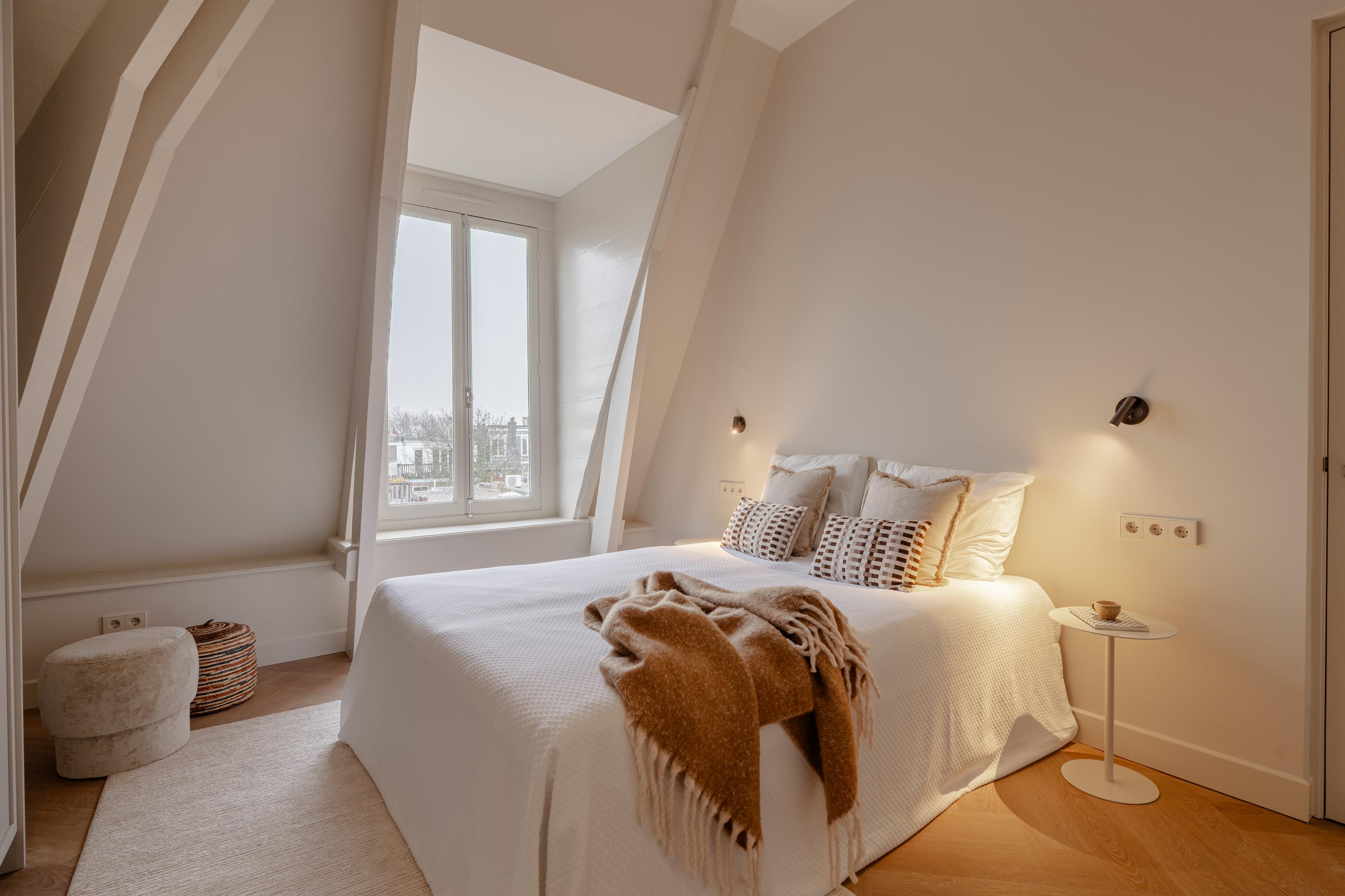 El apartamento Amsterdam Oud-Zuid ofrece una experiencia residencial refinada en una vivienda de 102,4 m², situada en la cuarta planta de una elegante avenida. Esta propiedad se distingue por sus techos altos y una estructura de tejado llamativa, culminando en amplios tragaluces en la parte posterior. El salón se ve inundado de luz natural y ofrece vistas despejadas sobre el entorno verde urbano, generando una inusual sensación de serenidad en pleno centro de la ciudad.