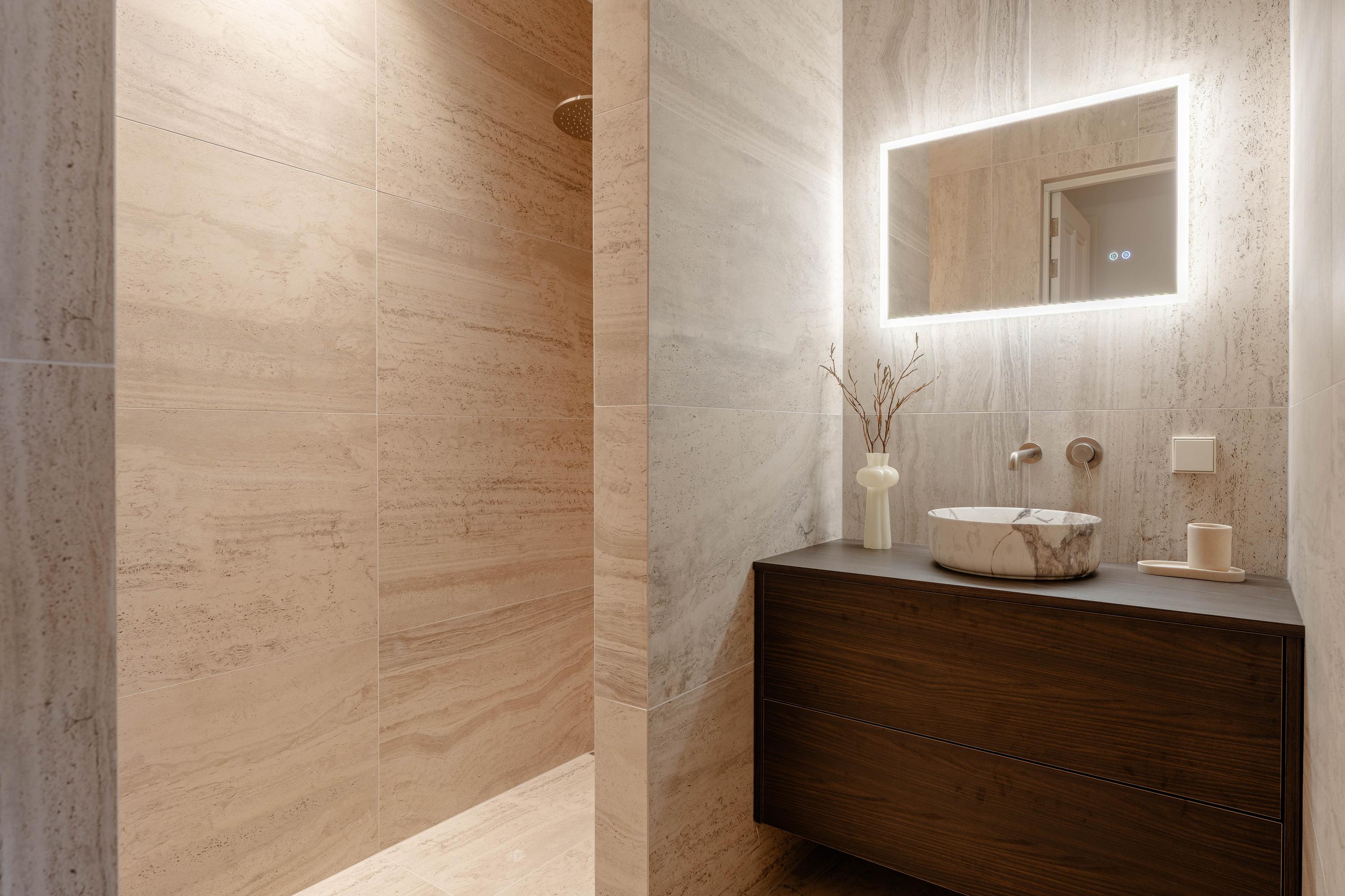 El amplio salón y la cocina ocupan la parte trasera, conformando un espacio diáfano ideal tanto para ocasiones sociales como para veladas tranquilas. Los acabados son elegantes y atemporales, e incluyen una placa de inducción, grifo Quooker, horno combinado, armario climatizado y abundante espacio de almacenamiento, pensado para el confort diario. Dos dormitorios espaciosos garantizan privacidad y tranquilidad; la suite principal dispone de baño en suite, ducha a ras de suelo y doble lavabo.