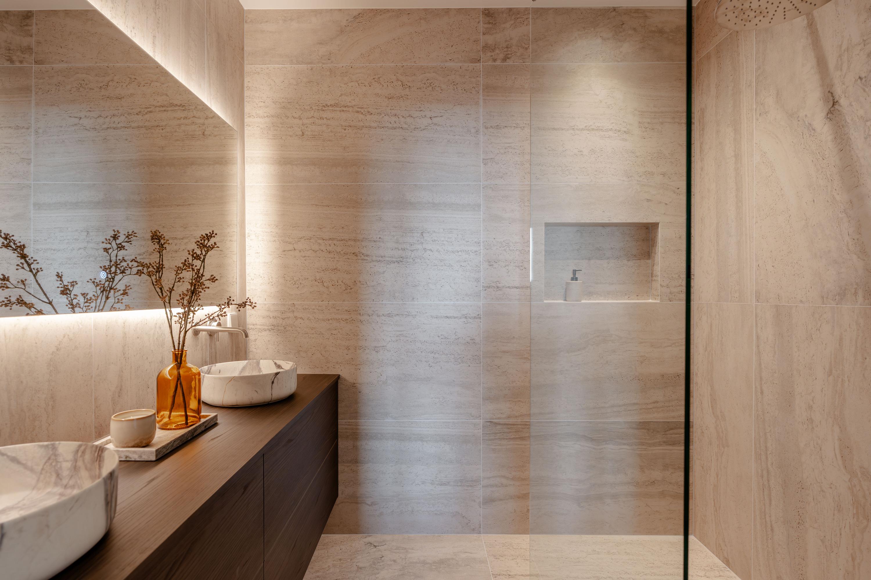 Le vaste séjour et la cuisine occupent l’arrière de l’appartement, formant un ensemble ouvert propice aussi bien à la convivialité qu’aux soirées sereines. Les finitions sont à la fois élégantes et intemporelles, avec une plaque à induction, un robinet Quooker, un four combiné, une armoire à climat, ainsi que de nombreux rangements pour une vie quotidienne facilitée. Deux chambres bien proportionnées garantissent intimité et quiétude, la suite parentale disposant d’une salle de bains attenante, d’une douche à l’italienne et d’une double vasque.