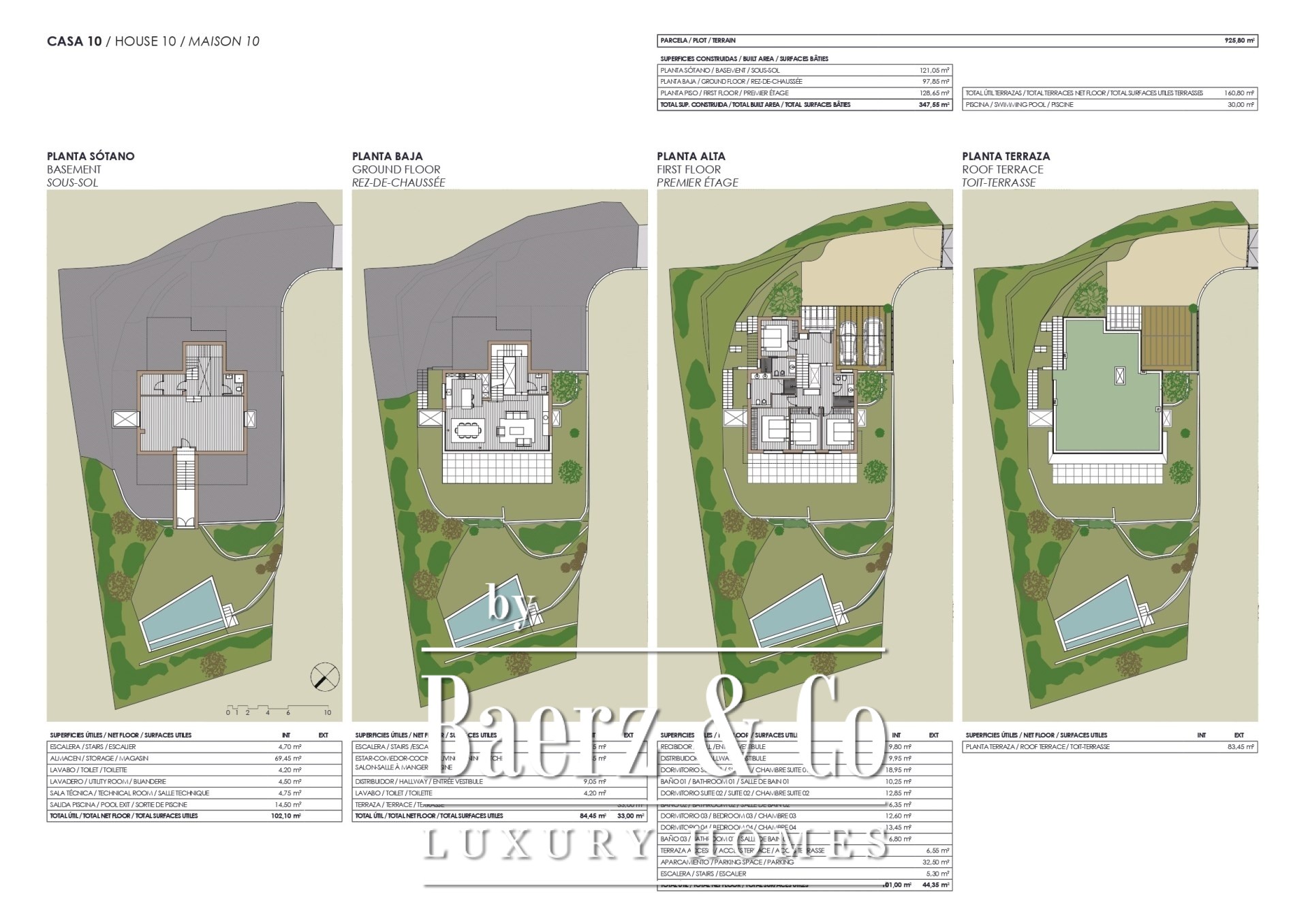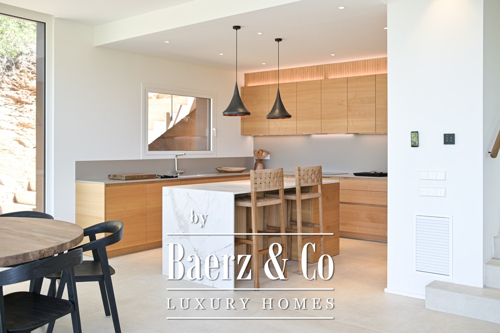La villa propose 347 m² d’espace de vie sur un terrain de 925 m², comprenant quatre chambres et trois salles de bains. Les espaces intérieurs, ouverts grâce à de grandes baies vitrées, invitent la lumière méditerranéenne à pénétrer, effaçant la frontière entre l’intérieur et l’extérieur. Des matériaux haut de gamme et des finitions sur-mesure confèrent une atmosphère sereine à l’ensemble, tandis que terrasses, piscine, carport et jardin paysager permettent de profiter d’une vie en plein air à l’abri des regards. La sécurité est assurée par un système d’alarme et un accès sécurisé, tandis que le chauffage et la climatisation garantissent un confort tout au long de l’année.