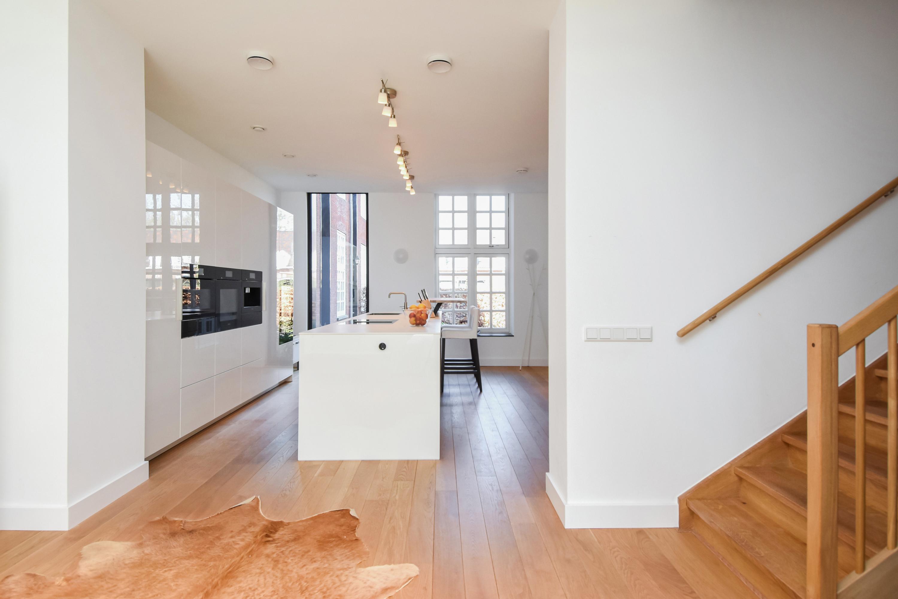 - Massief eikenhouten vloer in vrijwel de gehele woning