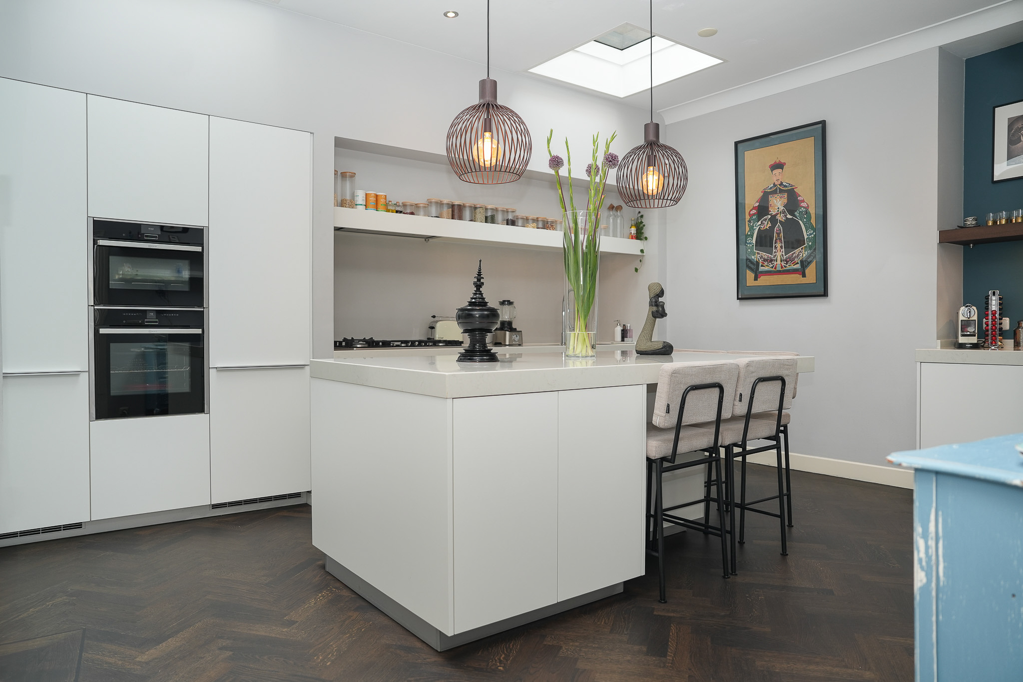 De begane grond biedt je een woonkamer, tussenkamer, eetkamer en een luxe woonkeuken.
