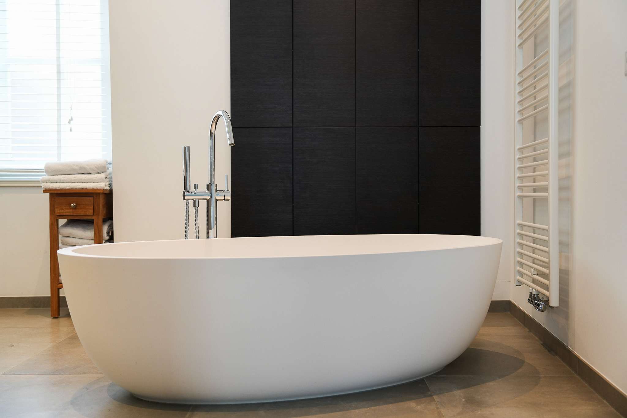 De eerste verdieping heeft desgewenst wederom een woonkamer met schouw, een grote slaapkamer met luxe badkamer en suite, een kastenkamer en een royale daktuin.