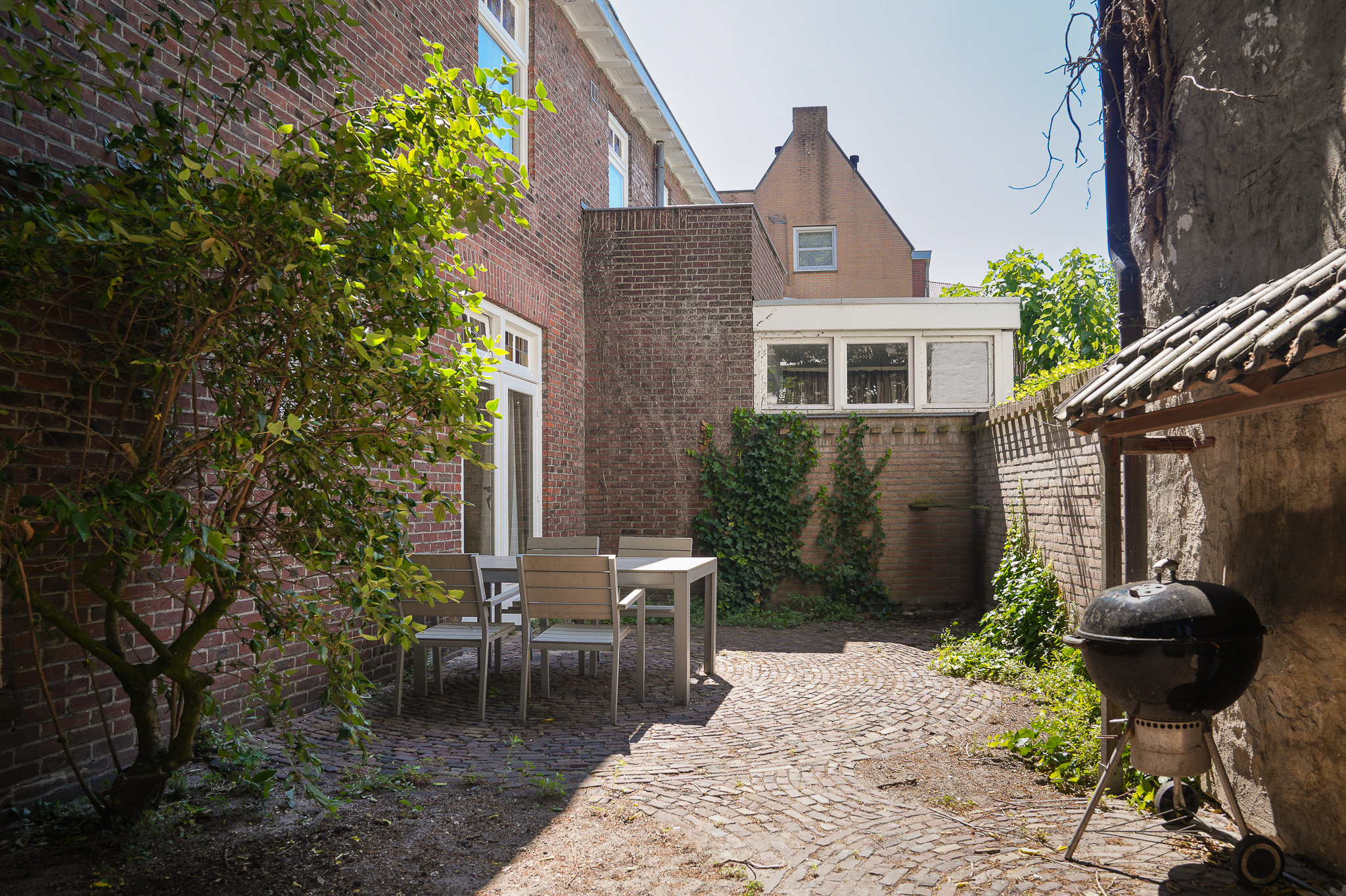 Er is een achtertuin met middag- en avondzon.