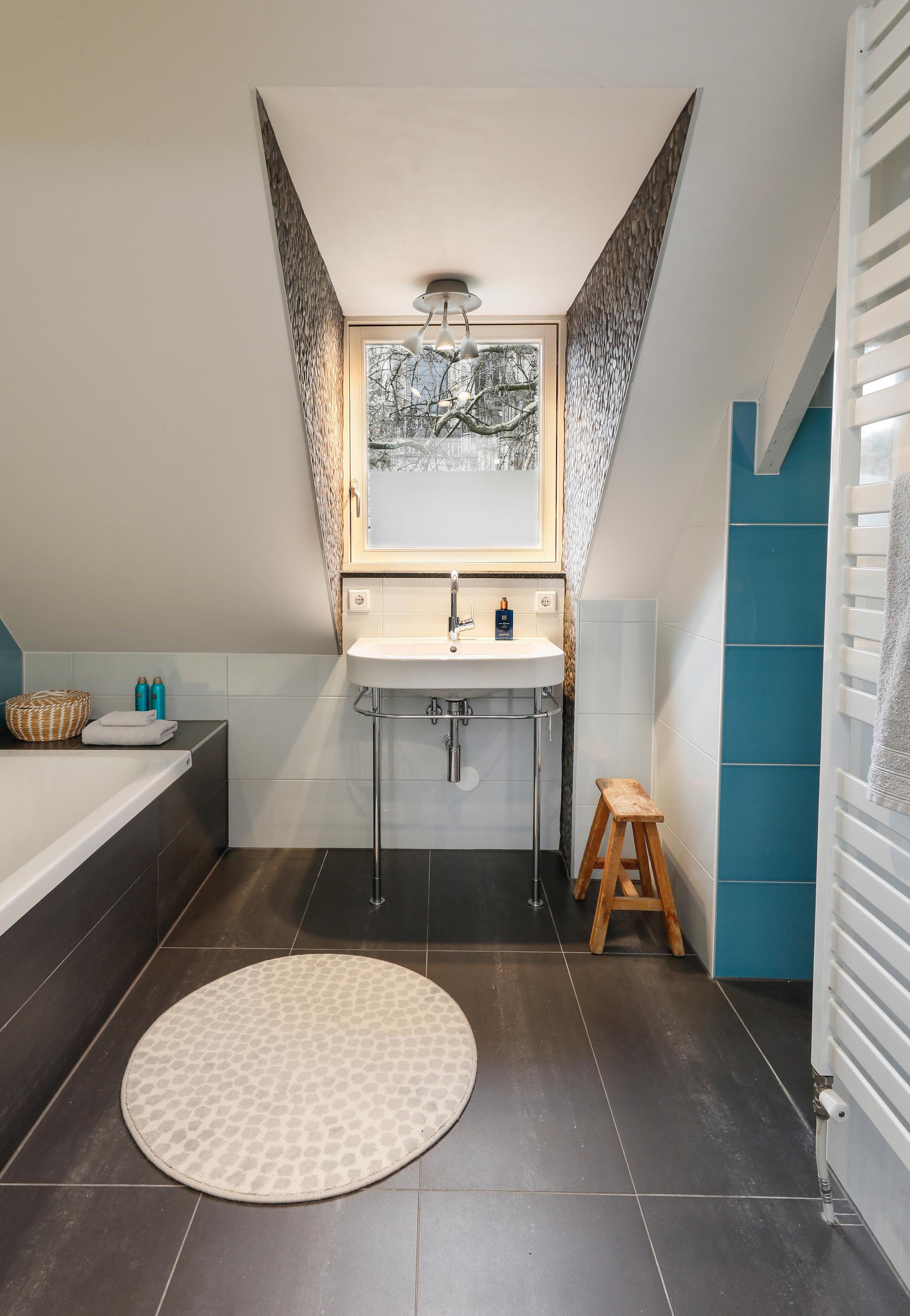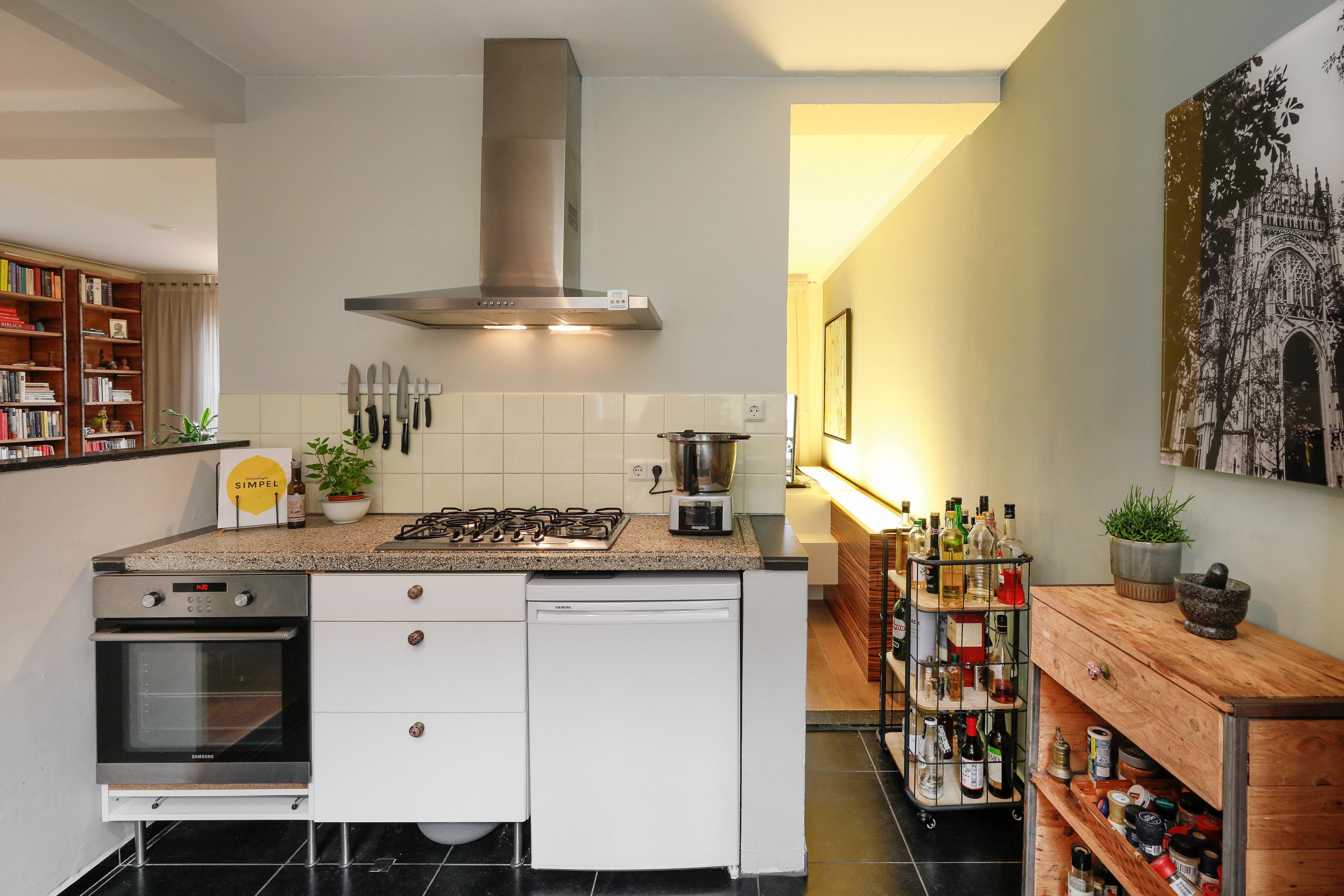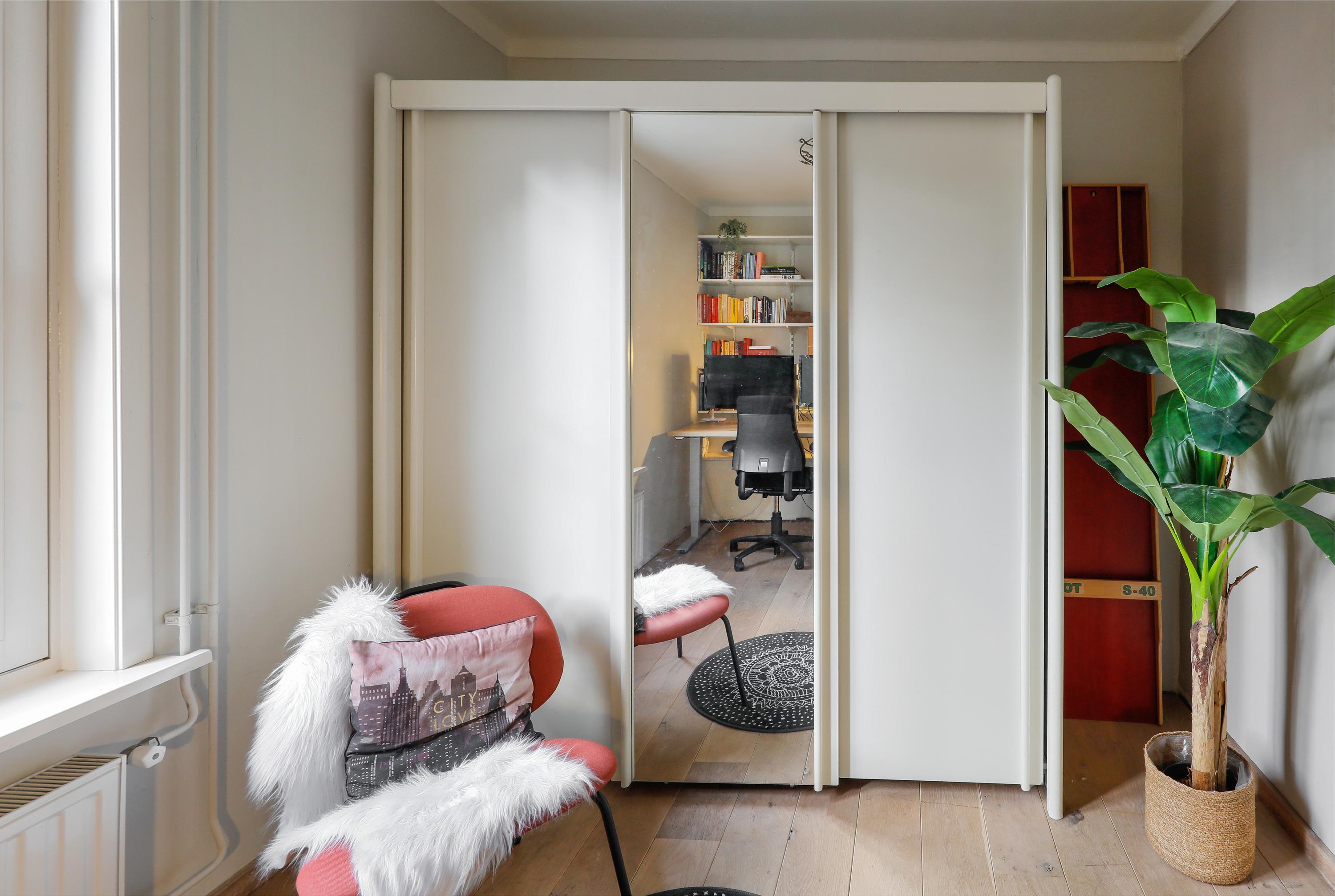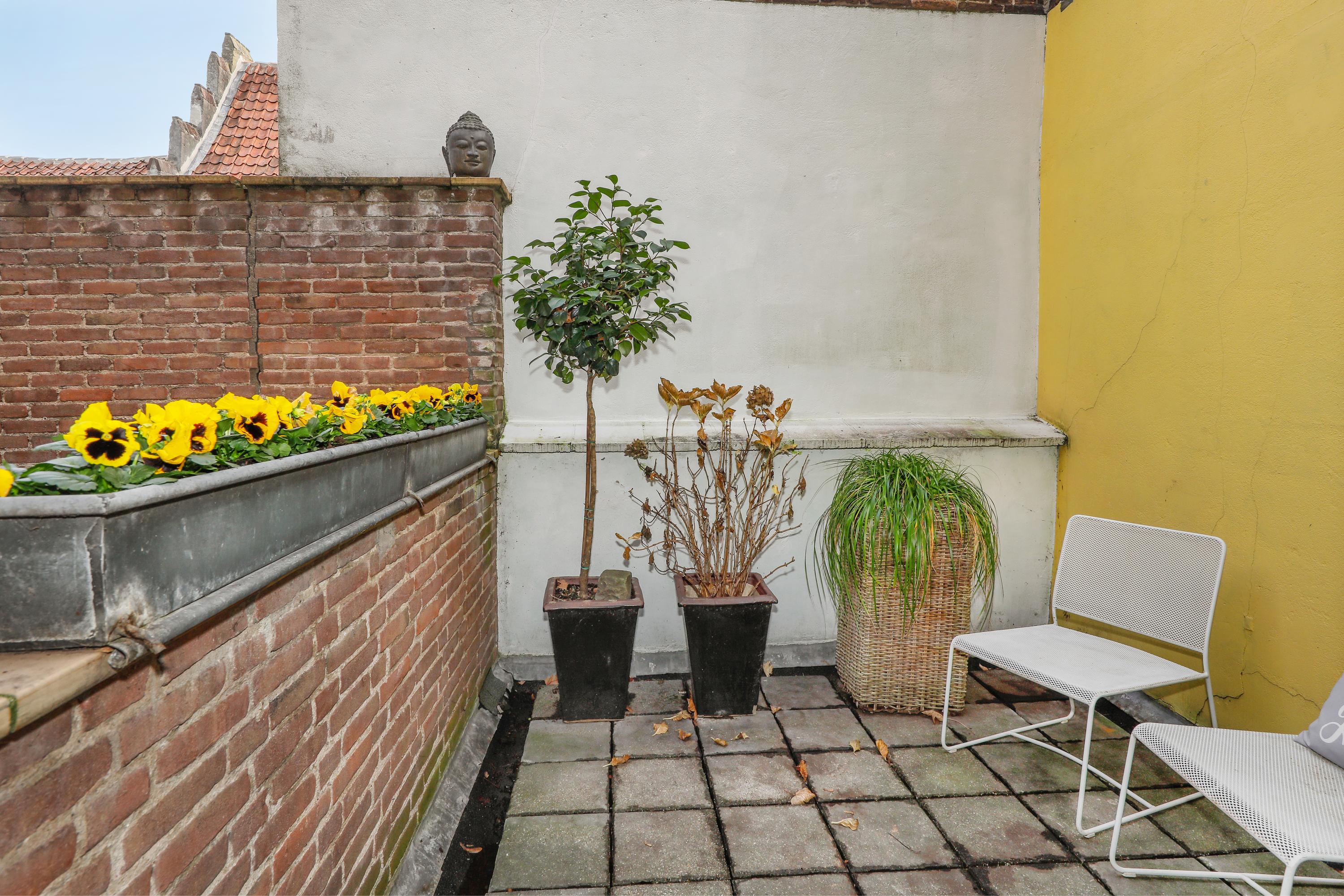 De woonkamer ligt op de hoek en heeft daardoor een mooi uitzicht op de Sint-Jan én het pleintje ernaast. De semi-open keuken is verbonden zonder dat je het gevoel hebt in de kamer te staan koken. Daarnaast bevindt zich op deze verdieping, naast het dakterras, ook een extra kamer, ideaal als werk- of logeerkamer.