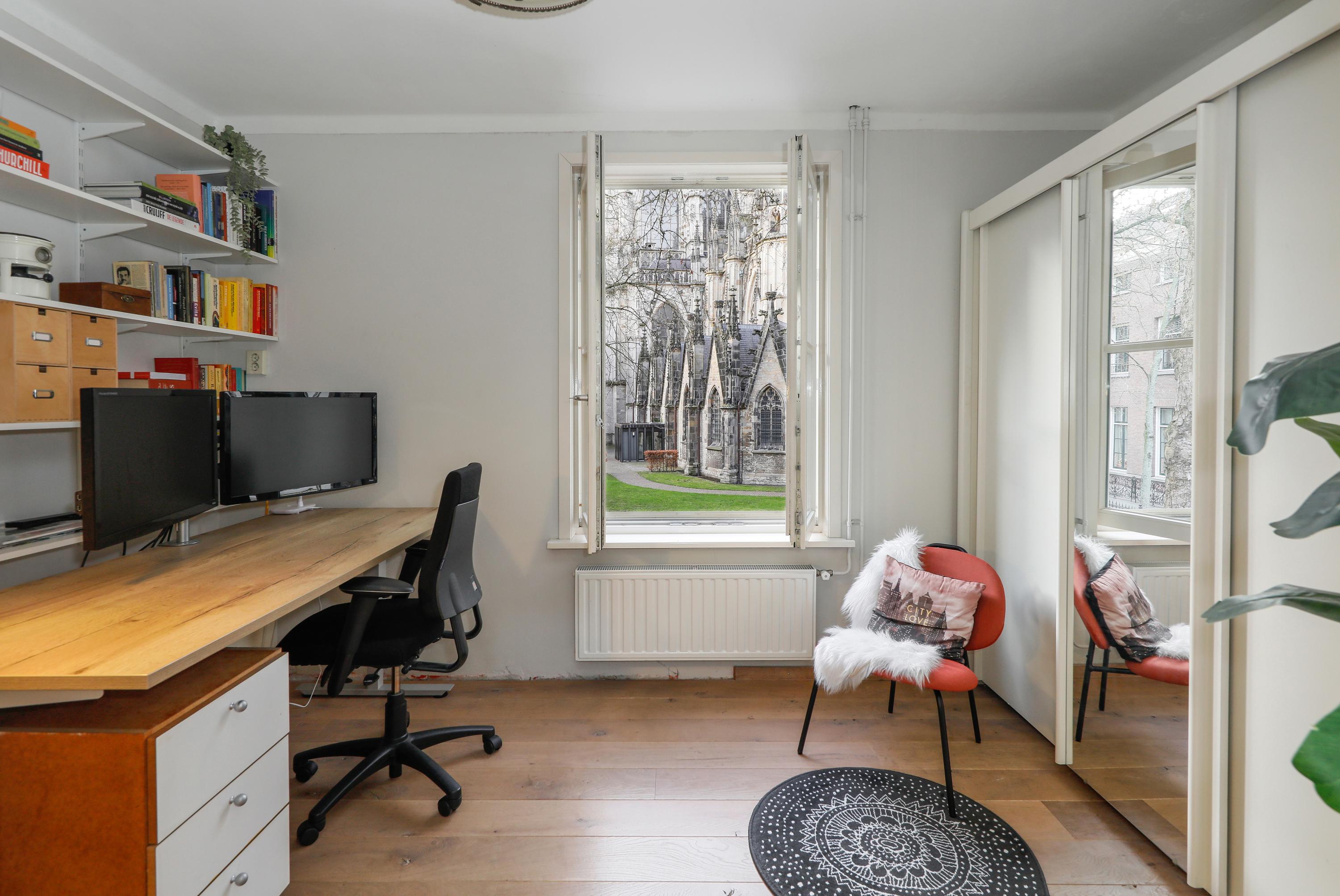 Aan het idyllische Sint Janskerkhof, pal naast de Sint-Janskathedraal, ligt deze ruime en karaktervolle bovenwoning van ca. 125 m² met dakterras. Een unieke combinatie van rust, historie en stadsleven, midden in de binnenstad maar toch verrassend stil.