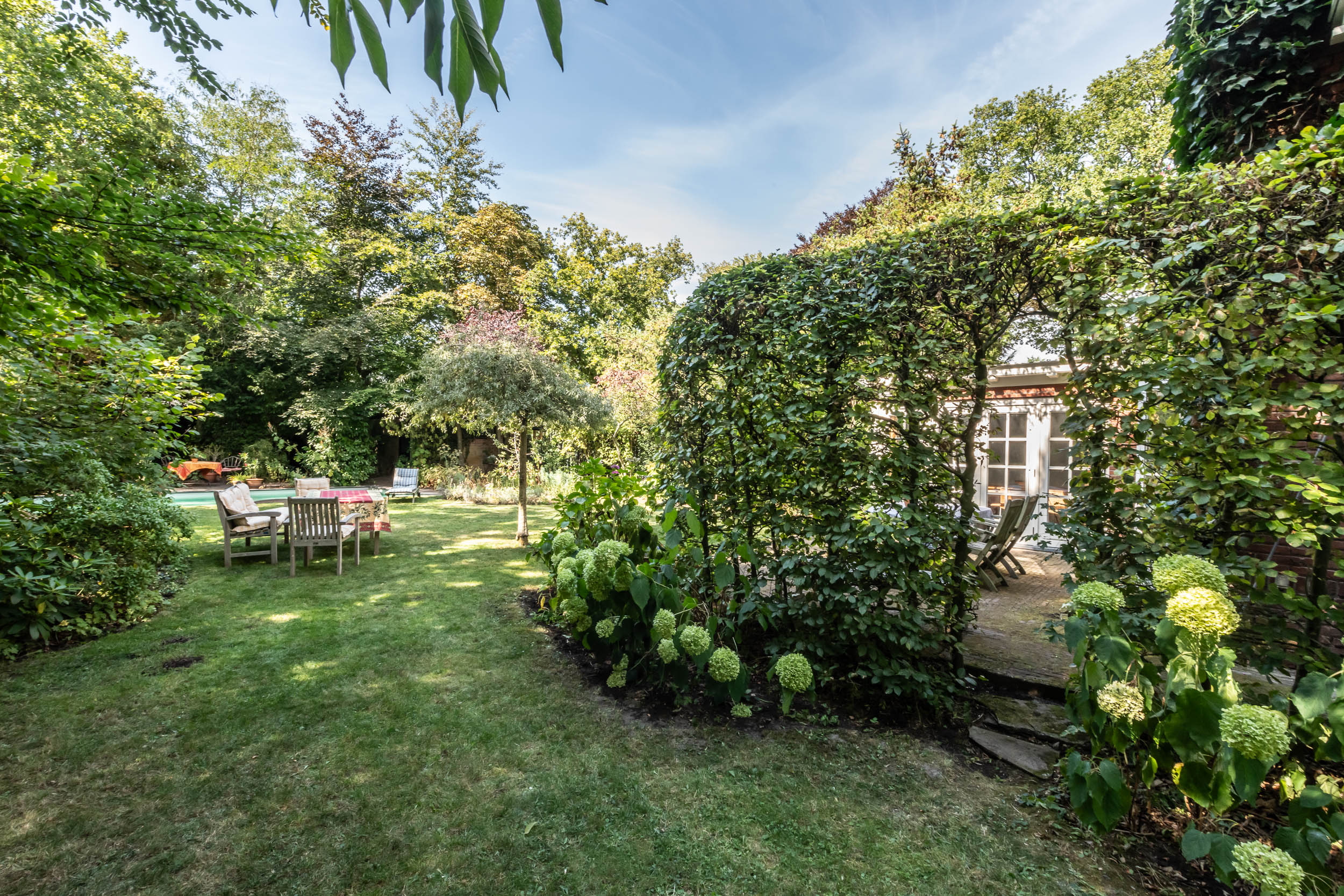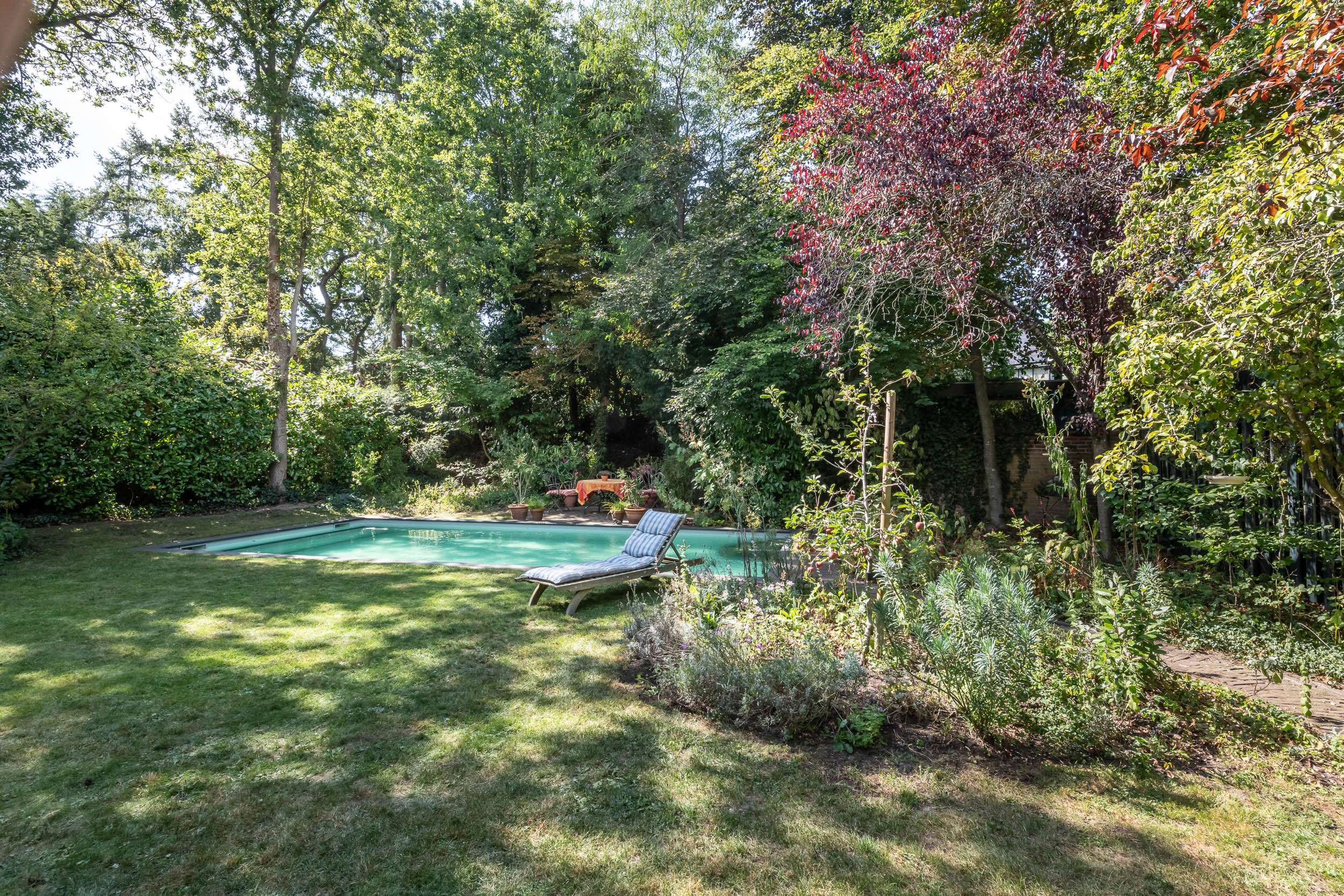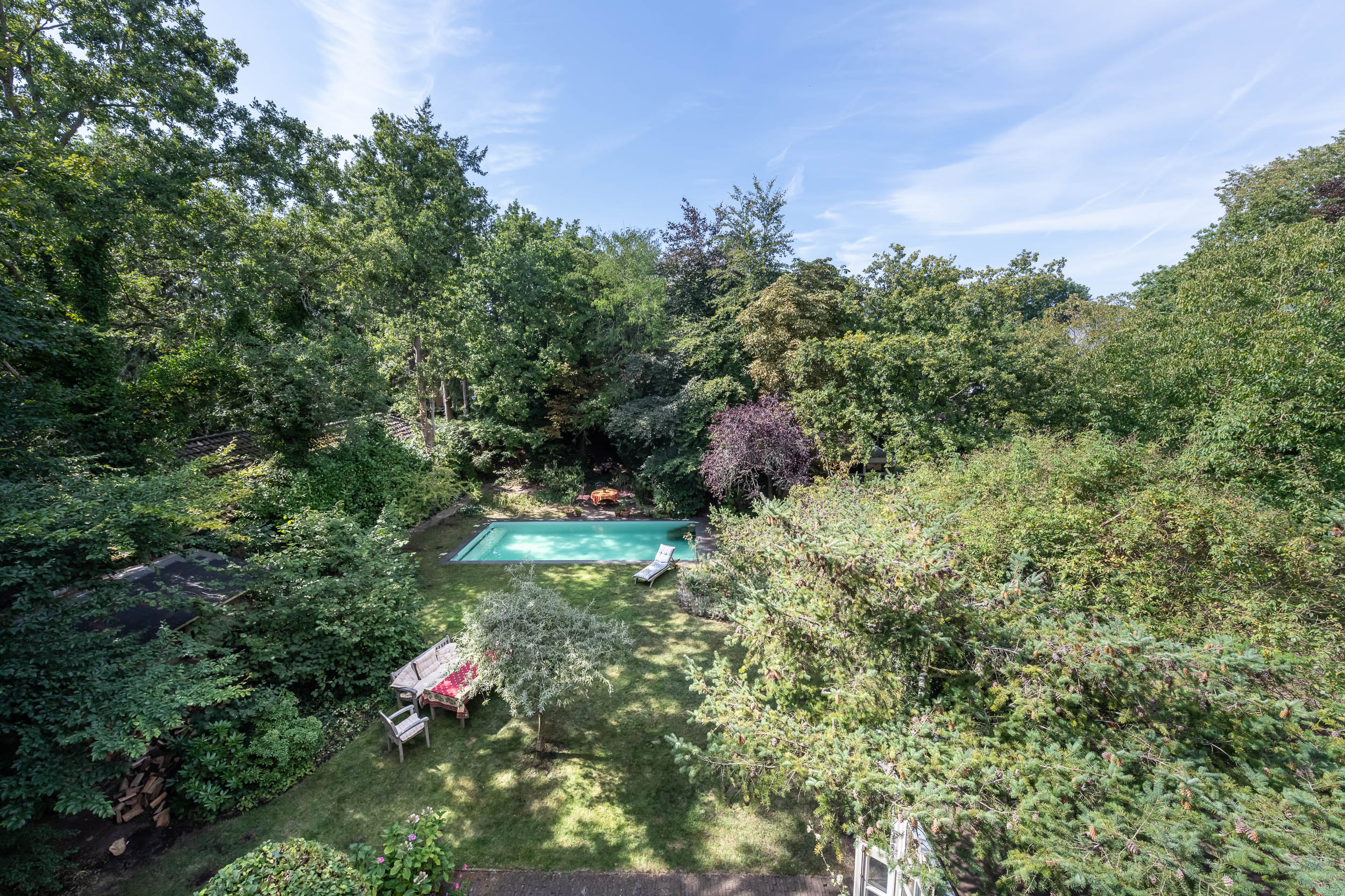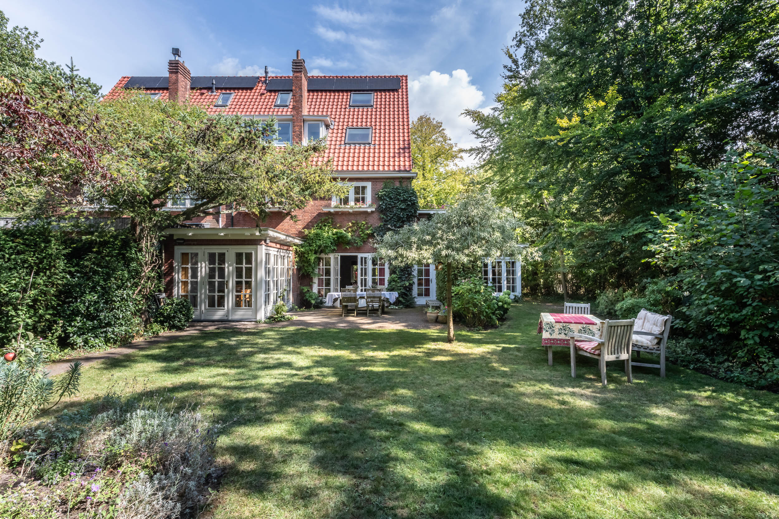 Aan de groene en rustige Grenslaan ligt deze goed onderhouden half vrijstaande karakteristieke, onder architectuur gebouwde villa met zwembad en garage op een groot perceel van ruim1000m2. Alle woonvertrekken liggen prachtig op de zon (west- en zuidzijde). Een familiehuis bij uitstek: 6 slaapkamers en 2 badkamers! Door de uitbouw (geheel in stijl met het hoofdhuis) aan de zijkant van het huis, is er veel ruimte op de begane grond gecreëerd voor bijvoorbeeld een speelkamer, tv-kamer of werkkamer. De fraai aangelegde tuin heeft meerdere terrassen, een zonnige ligging op het westen en biedt alle privacy! Aan de achterzijde van de tuin, waar het perceel grenst aan de Wikkelaan, is parkeergelegenheid voor twee auto’s op eigen grond en een eigen laadpaal. In de tuin zijn diverse opstallen: een houten vrijstaande schuur in de achtertuin en een garage.