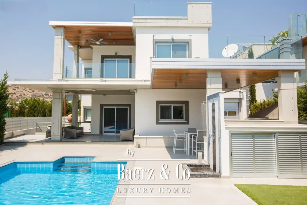 Villa Agios Tychonas bevindt zich op een toplocatie in Limassol en combineert hedendaagse architectuur met privacy en lichte, ruimtelijke interieurs. Deze villa is verdeeld over drie verdiepingen en biedt 275 m² woonruimte op een perceel van 600 m², met royale, lichte vertrekken en een naadloze verbinding tussen keuken, eetkamer en open living. Vier slaapkamers, waaronder een master met toegang tot het terras, en een flexibele gasten- of personeelssuite op de benedenverdieping bieden een comfortabel en luxueus verblijf.