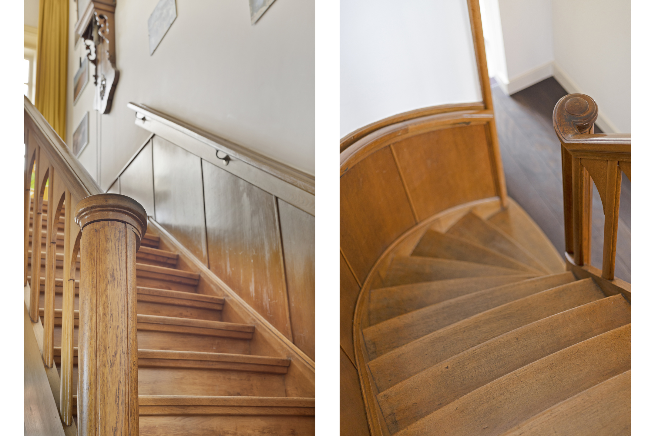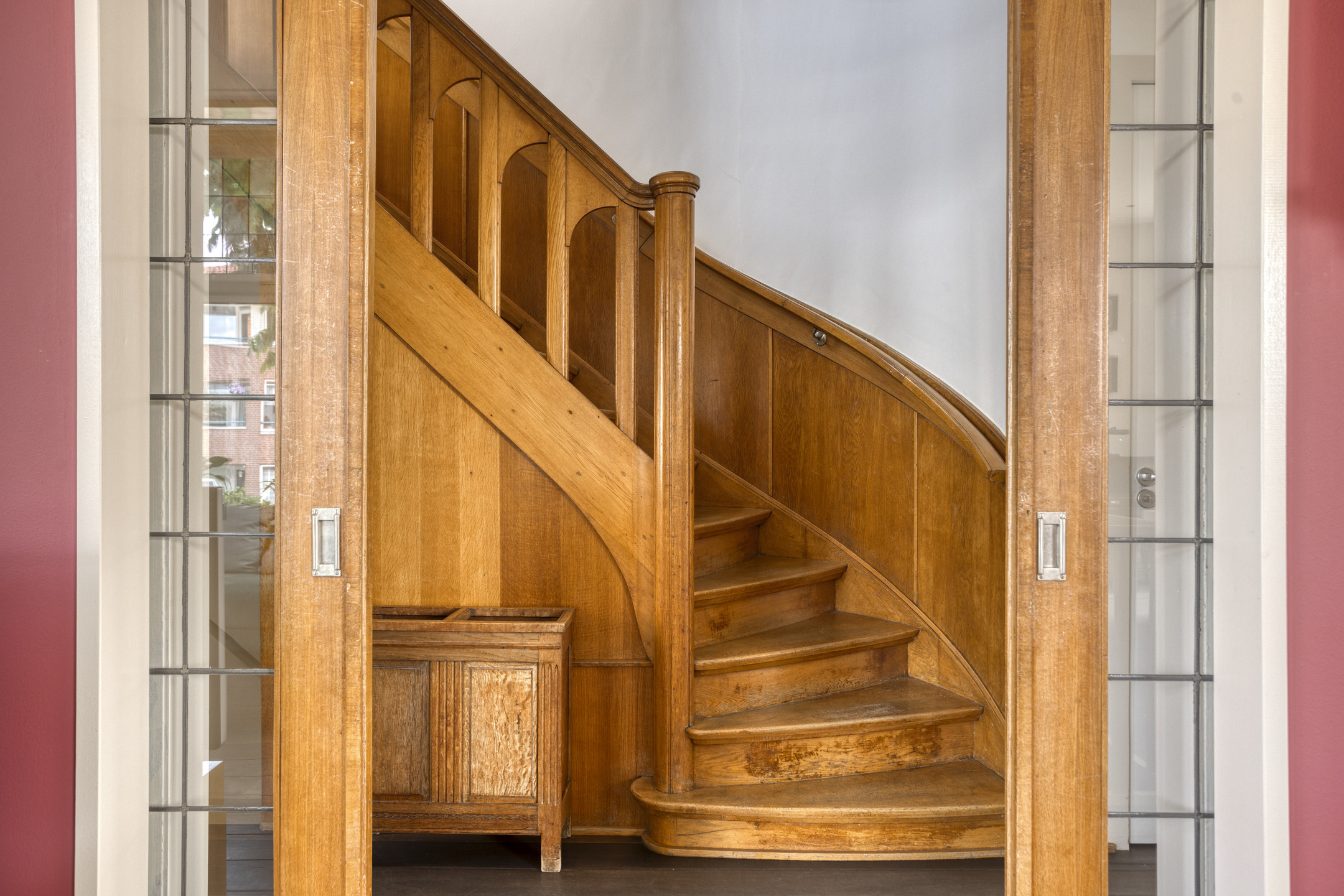 Via de trap met originele balustrade bereikt u de entree. U komt binnen in het tochtportaal met originele wandbekleding, die direct de historische sfeer van het huis voelbaar maakt. De hal biedt toegang tot een net toilet met fontein en de woonvertrekken. De woonkamer is uitzonderlijk royaal en beschikt over een prachtige Purpleheart houten vloer, strak gestucte wanden en plafonds voorzien van inbouwspotjes. De karakteristieke erker, open haard, hoge plafonds en indrukwekkende glas-in-loodramen maken deze ruimte helemaal af.