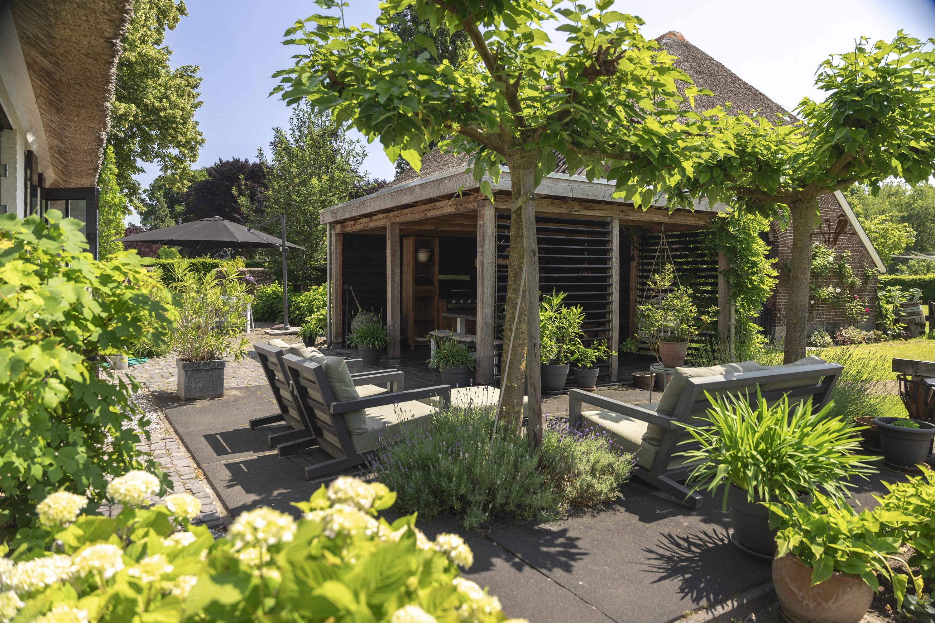 Zo modern als het huis vanbinnen is, zo lieflijk en schilderachtig is de tuin. Als een waar groen paradijs, met grote gazons, een boomgaard en schitterende terrassen. Even behoefte aan een frisse neus? Achter in de tuin is de oever van het Twentekanaal te bereiken middels een bruggetje.