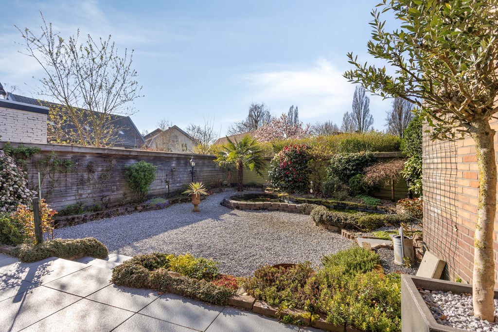 Een absoluut hoogtepunt van de woning is de riante, zonnige achtertuin. De tuin is deels bestraat en wordt aangevuld met veel groen, wat zorgt voor een levendige en sfeervolle buitenruimte. Het is de ideale plek om volop van de zonuren te genieten. Dankzij de royale opzet leent de tuin zich uitstekend voor het creëren van meerdere terrassen, zodat u op elk moment van de dag een fijne plek in de zon of schaduw kunt vinden. Vanuit de tuin heeft u bovendien direct toegang tot de berging.