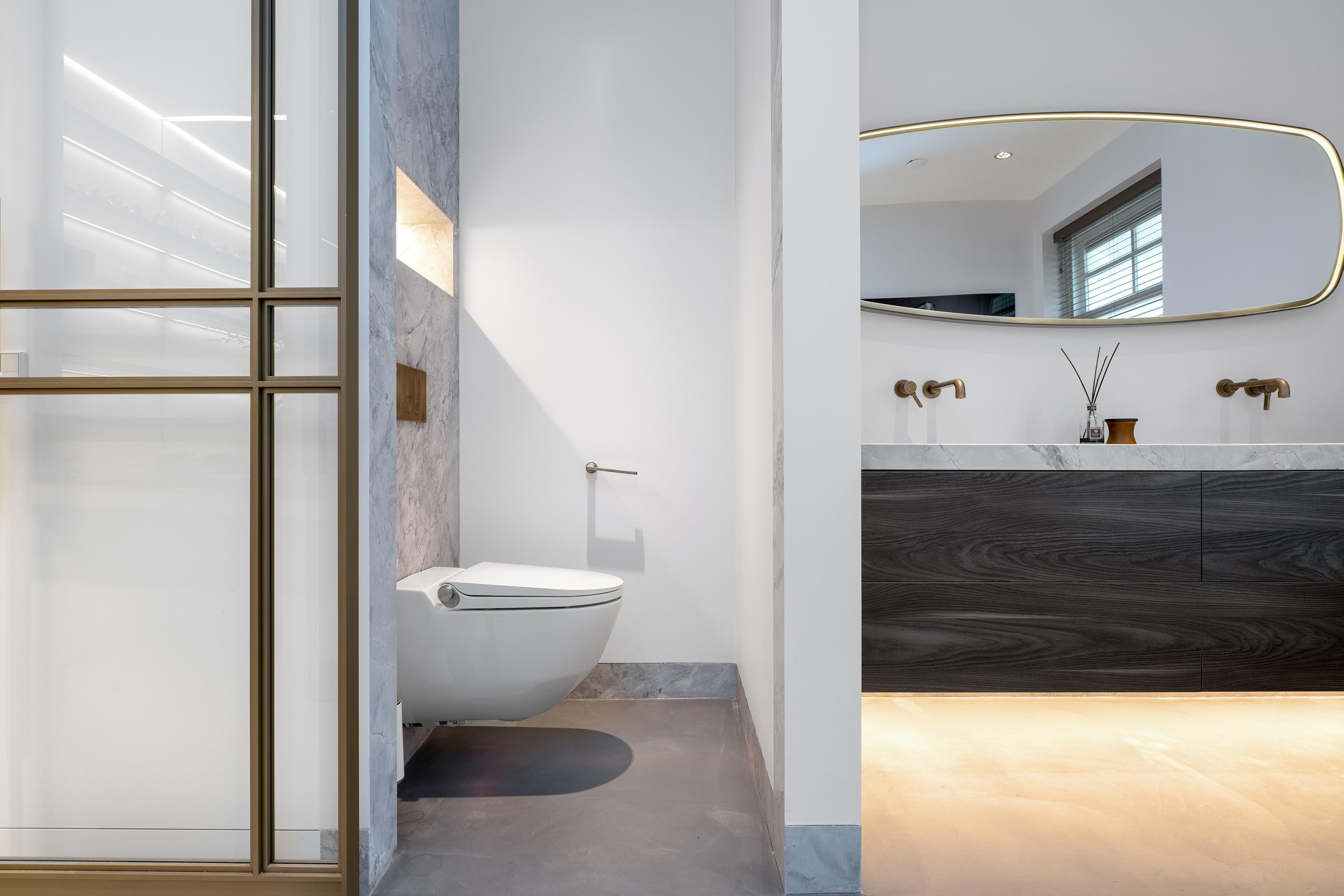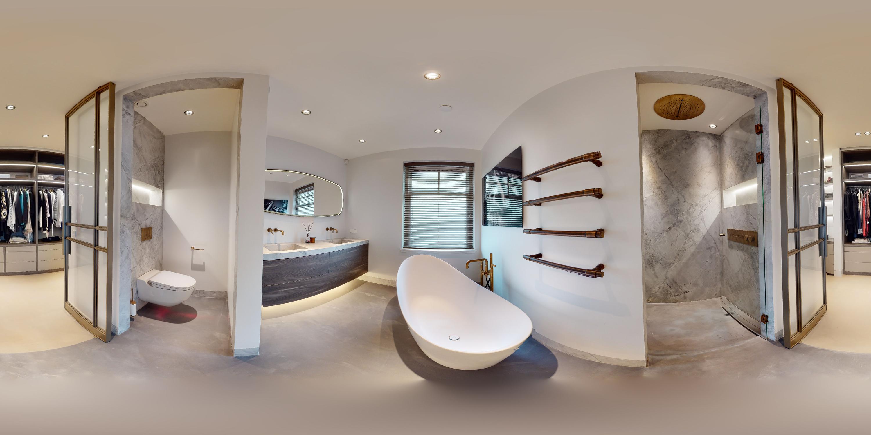 De master bedroom is aan de voorzijde van de woning gelegen. Deze riante kamer biedt een ruime walk-in closet aan weerszijde van de kamer, inclusief ingebouwde kaptafel. En-suite bevindt zich een luxe uitgevoerde badkamer voorzien van een losstaand ligbad, ruime regendouche, dubbele natuurstenen wasbak met meubel en douche-toilet.