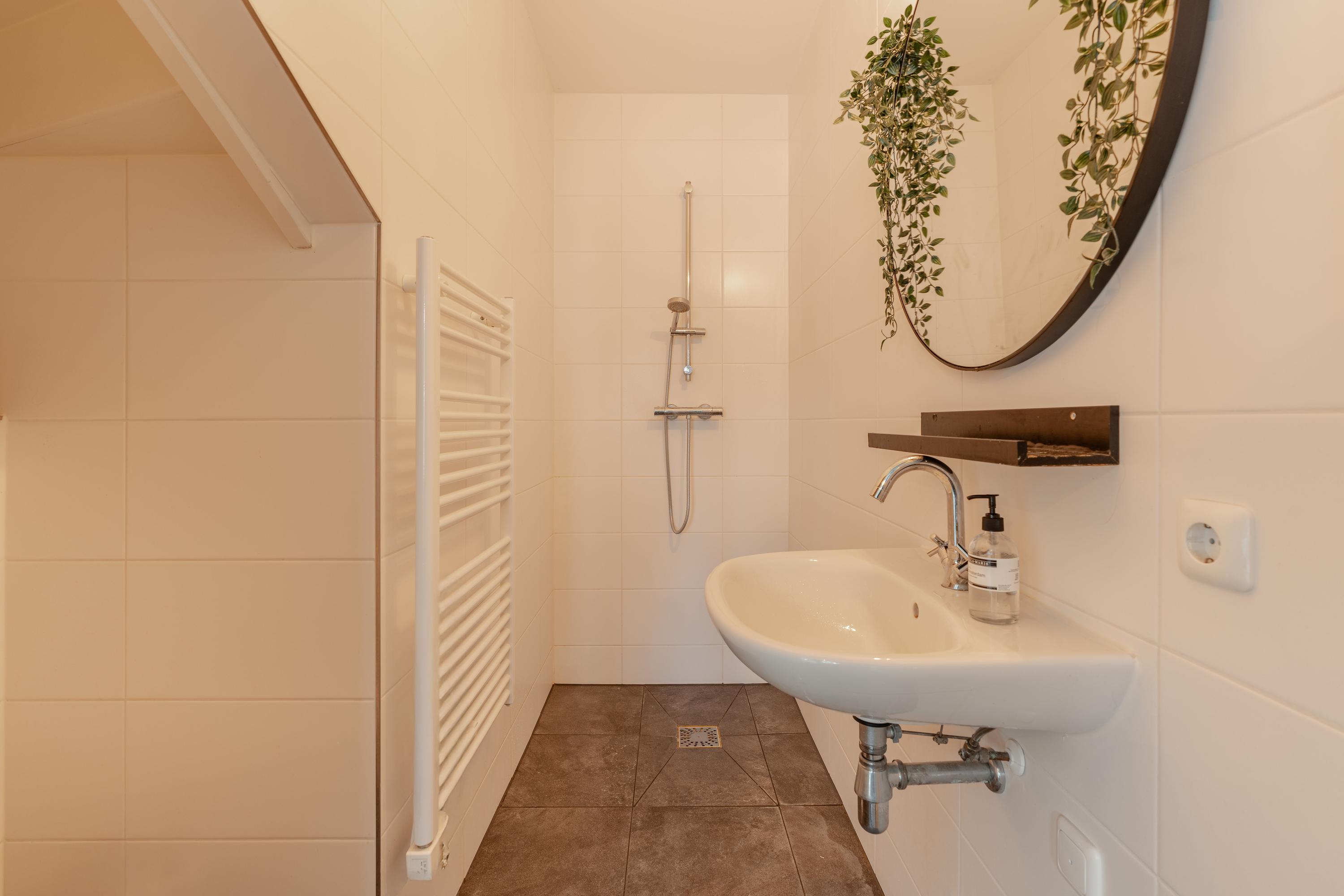 Aan de achterzijde bevindt zich de tweede slaapkamer, eveneens van goed formaat met ligbad en voorzien van een aangrenzende badkamer met douche en wastafel. Daarnaast beschikt deze verdieping over een separaat toilet en een praktische bergruimte ruimte.