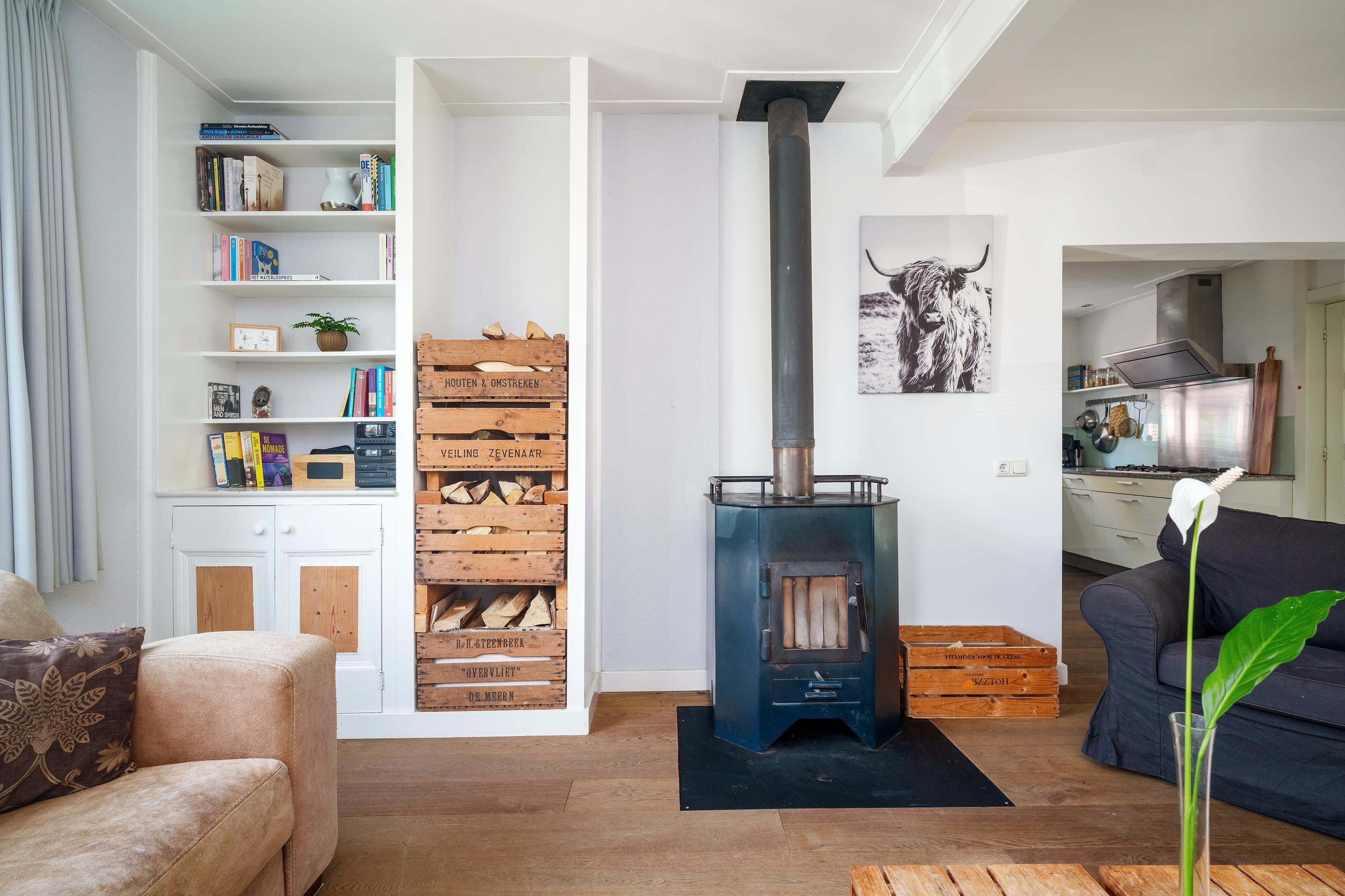 - Robuuste houtkachel met warmtewisselaar, cascade geschakeld met de CV-ketel