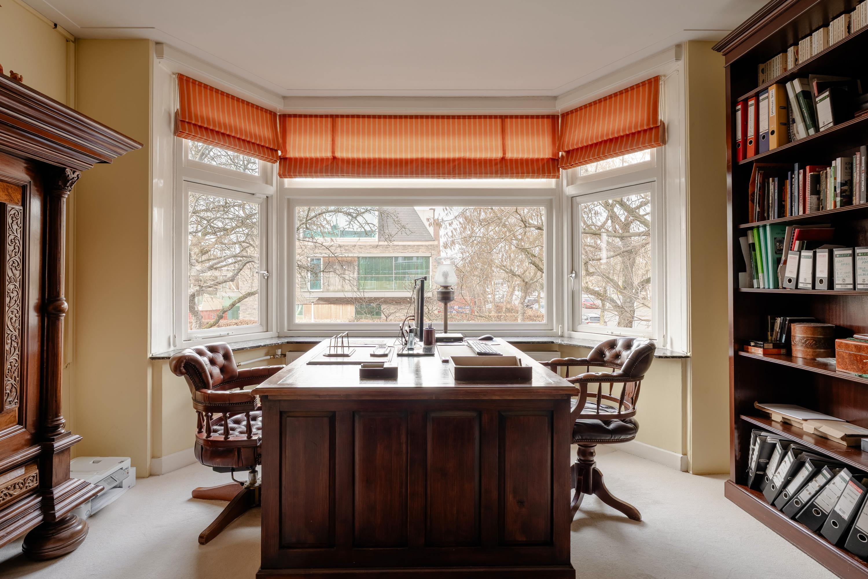 Deze verdieping wordt gekenmerkt door prachtige authentieke glas-in-loodramen en een fraaie parketvloer met bies. Aan de voorzijde bevindt zich de royale en lichte woonkamer en-suite met open haard, wat zorgt voor een zeer sfeervolle leefruimte.