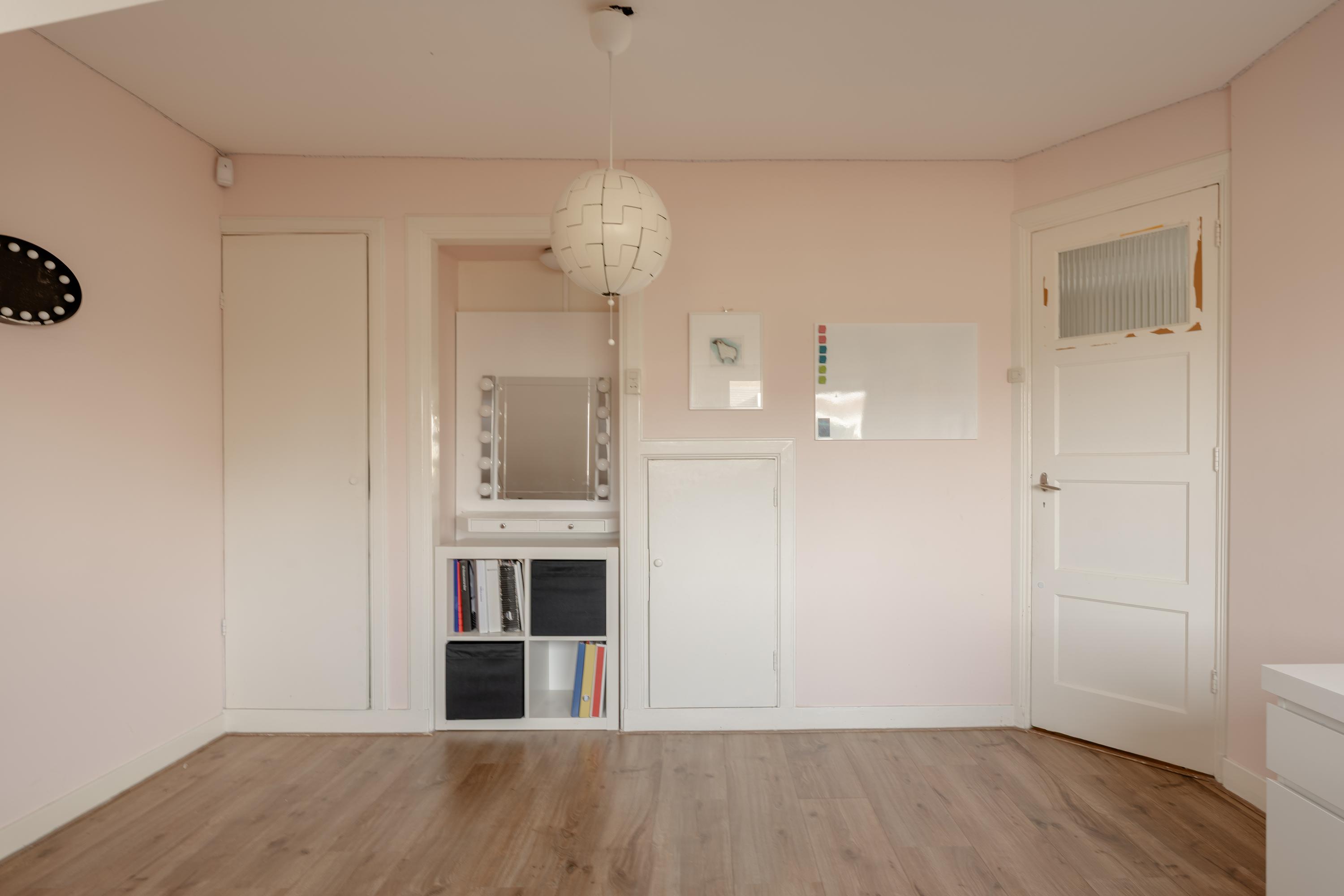 Daarnaast bevinden zich op deze verdieping nog drie (slaap)kamers. Twee kamers liggen aan de voorzijde, waarvan één momenteel in gebruik is als werkkamer. In het midden van deze verdieping bevindt zich een kamer die volledig is ingericht als inloopkast. Op de overloop bevindt zich tevens een separaat toilet.