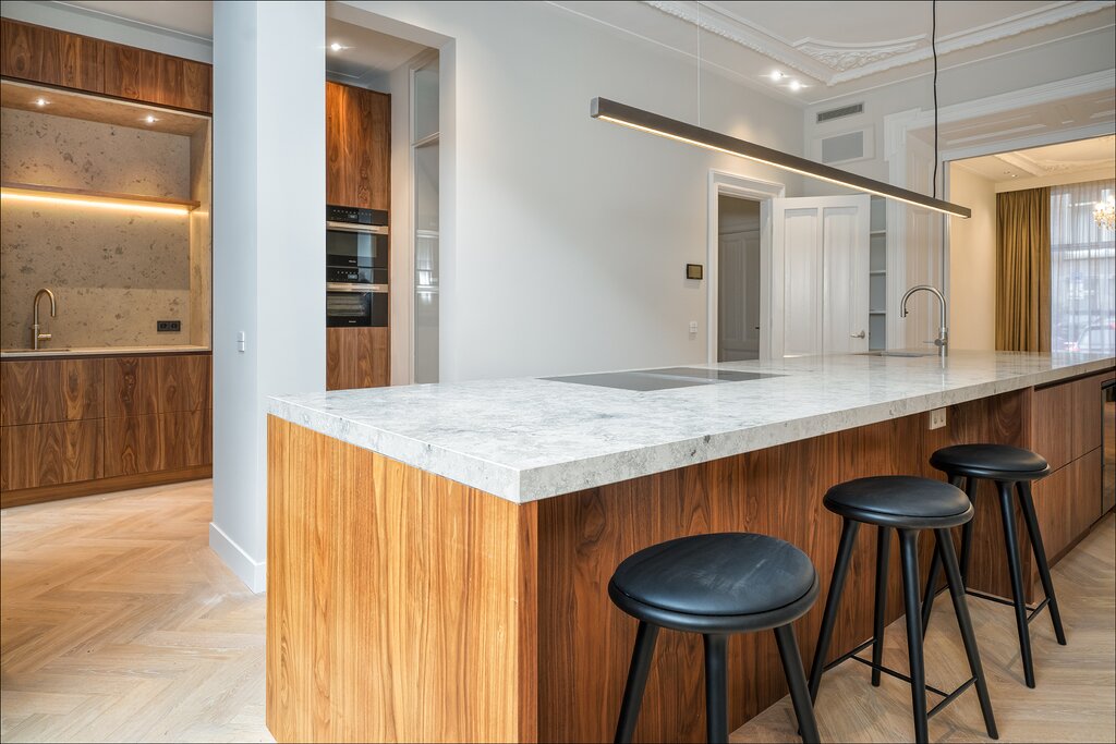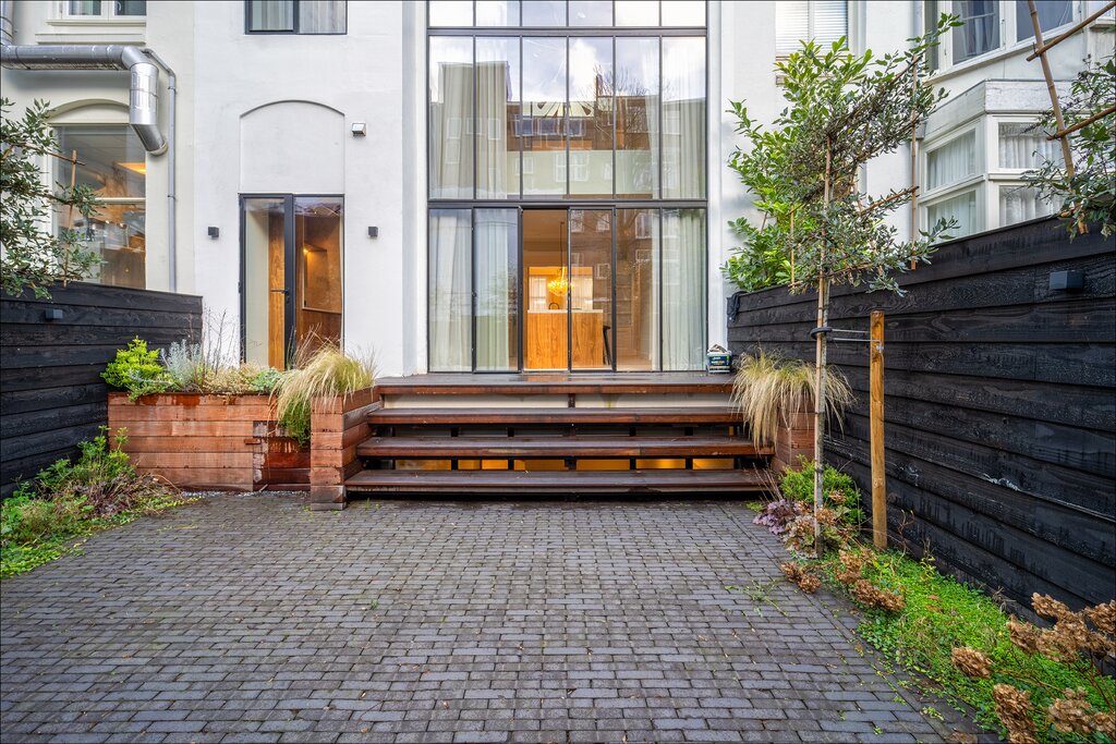 Prachtig herenhuis van ca. 385m². high-end gerenoveerd met behoud van originele details, verdeeld over 5 woonlagen, 6 openhaarden, heeft zowel een tuin als royaal dakterras met buitenkeuken. Een wellness met sauna, stoomdouche, fitnessruimte en een lift waarmee u tot en met het dakterras gebruik van kunt maken. Ook is de woning volledig voorzien van vloerverwarming en Climate Controll. Ongekende luxe in het hartje van Amsterdam Zuid.