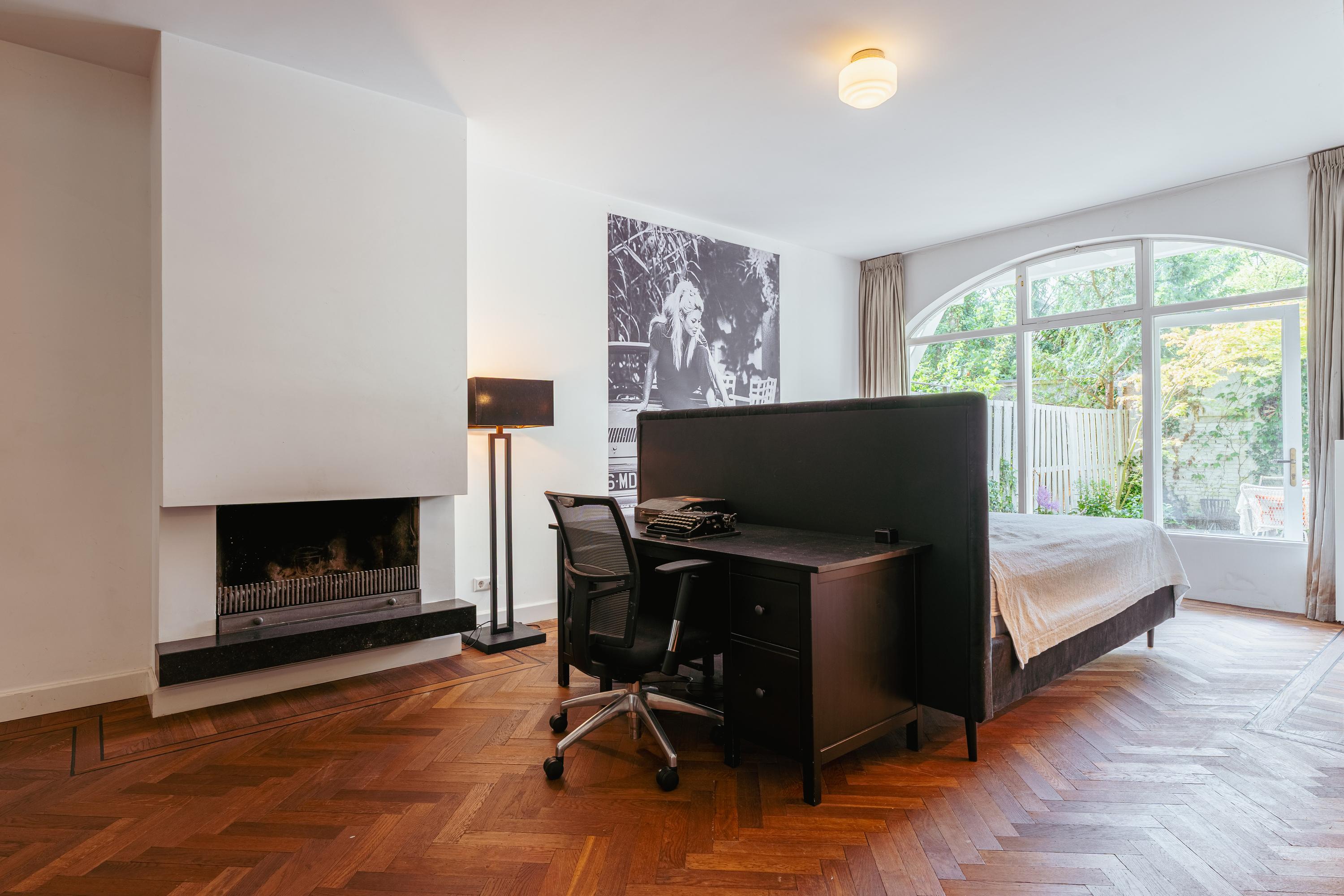 Het volwaardige souterrain biedt twee goed bemeten slaapkamers. De grootste slaapkamer is extra bijzonder dankzij de aanwezigheid van een authentieke open haard. Beide slaapkamers hebben openslaande deuren naar de diepe en beschutte achtertuin van circa 56 m², waar u in volledige privacy kunt ontspannen.