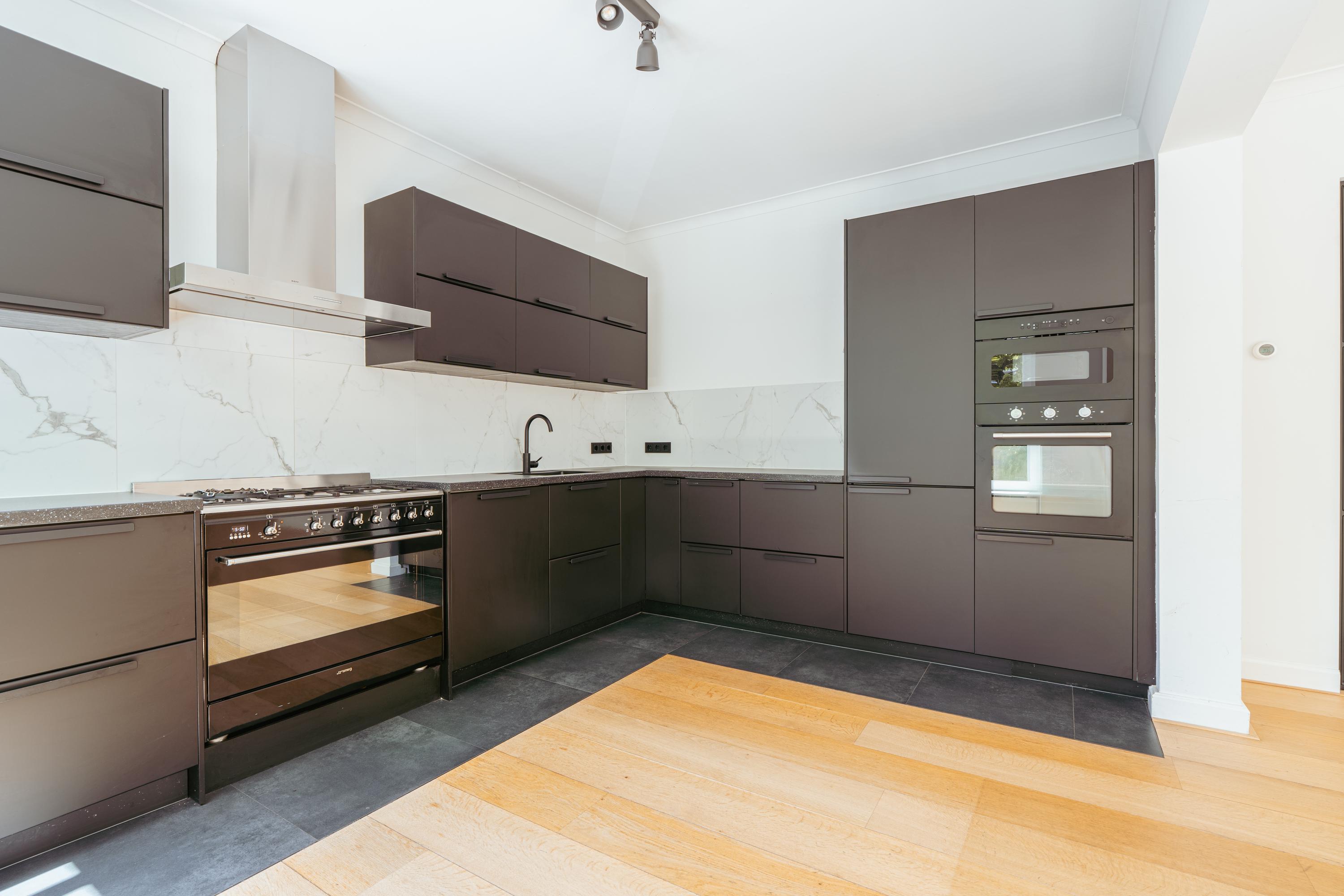 Via het verzorgde gemeenschappelijke entree met trappenhuis en lift bereikt u het appartement op de eerste verdieping. U komt binnen in een ruime hal van waaruit alle vertrekken toegankelijk zijn. De woonkamer is bereikbaar via stijlvolle stalen deuren en beschikt over een sfeervolle erker en grote raampartijen die voor veel licht zorgen. De open keuken sluit hier naadloos op aan en is uitgerust met een koelkast, vriezer, 5-pits gasfornuis, oven en vaatwasser.