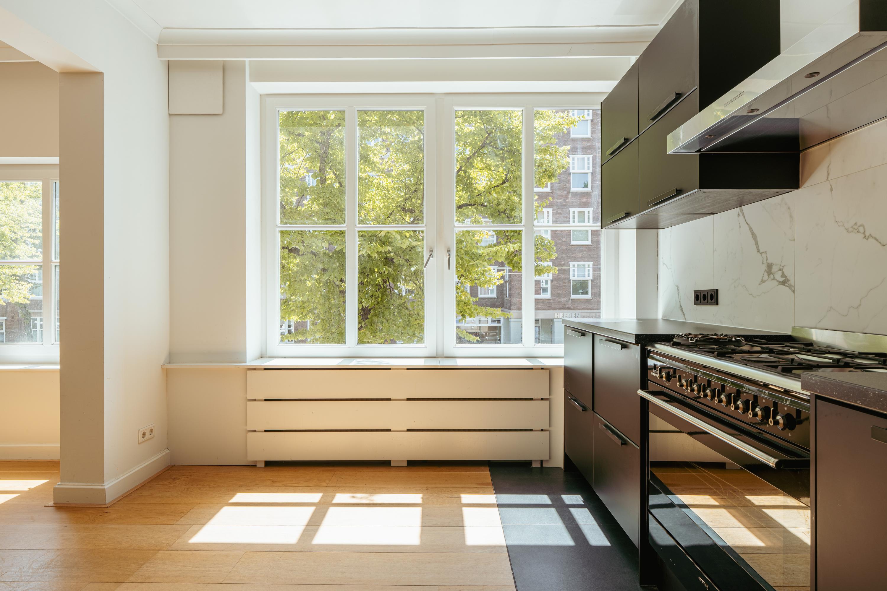 Sfeervol en licht 4-kamerappartement van ca. 118 m² met lift, balkon en privéberging, gelegen op een toplocatie in Amsterdam-Zuid, om de hoek van de Beethovenstraat. De woning beschikt over drie slaapkamers, twee badkamers, een moderne open keuken en karakteristieke glas-in-looddetails.
