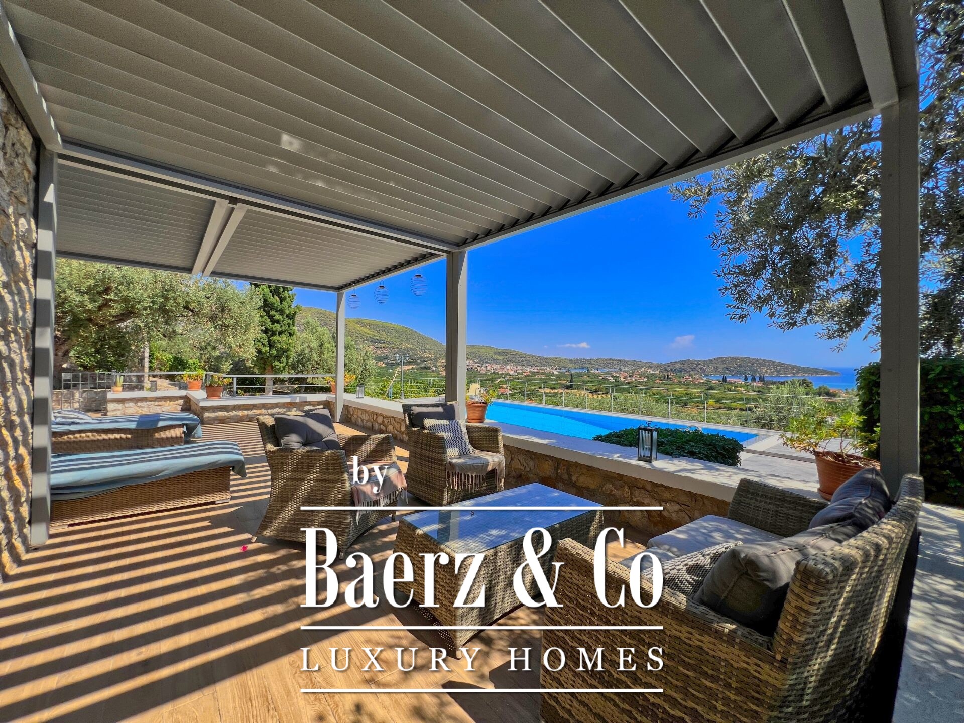 Vrijstaande woning Archaia Epidavros biedt een verfijnde balans tussen tijdloze materialen en hedendaags design, gelegen in een privé tuin van 1.500 m² met uitzicht op zee. Deze residentie van 198 m² is vanaf 2018 volledig gerenoveerd, met oog voor materiaalkeuze, bioklimatische pergola’s en slimme woonoplossingen die geschikt zijn voor zowel permanent als recreatief gebruik.