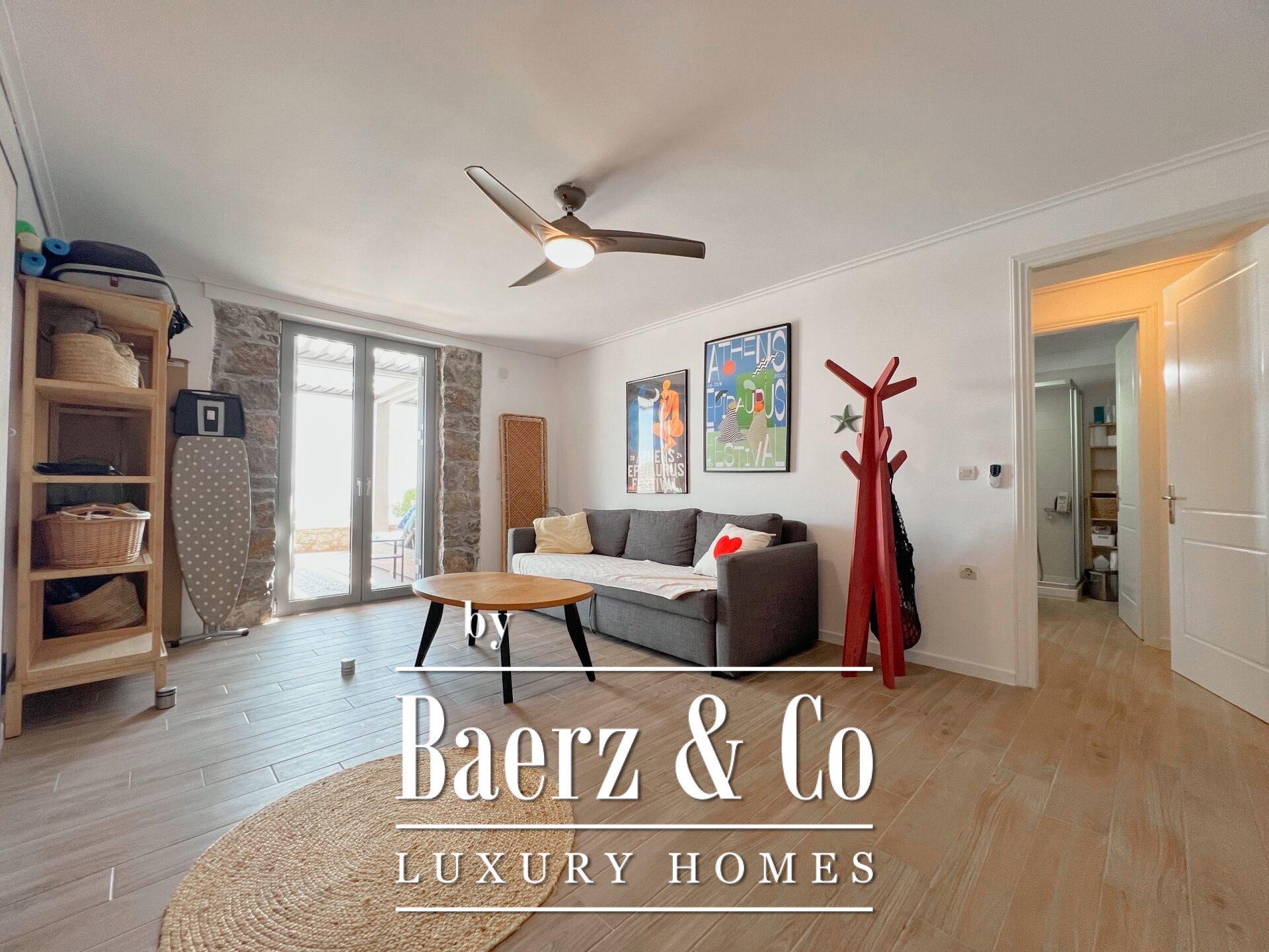 Verspreid over drie verdiepingen combineert de architectuur traditioneel metselwerk met moderne lijnen en panoramisch uitzicht op zee en bergen. De begane grond herbergt een zelfstandig appartement met drie slaapkamers, een woonruimte, keuken en twee toiletten, waarbij elk vertrek directe toegang tot de weelderige tuin heeft. Het middelste niveau omvat een lichte woon- en eetkamer, hoofdkeuken, toilet en toegang tot de bovenliggende slaapkamers. Op de eerste verdieping bevinden zich nog twee slaapkamers en een ruime badkamer, alle voorzien van veranda’s die uitnodigen tot het genieten van het vrije uitzicht en het natuurlijke licht.
