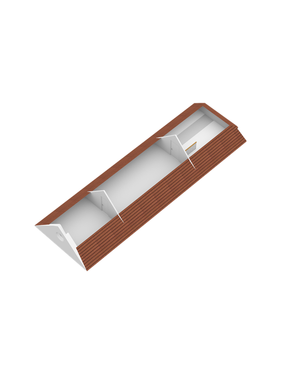 De zolderverdieping is in de huidige opzet gecompartimenteerd in twee ruimtes. Ideaal als grote opslagruimte maar door middel van een kleine aanpassing ook geschikt als bijvoorbeeld hobbykamer, werkkamer of sportruimte.