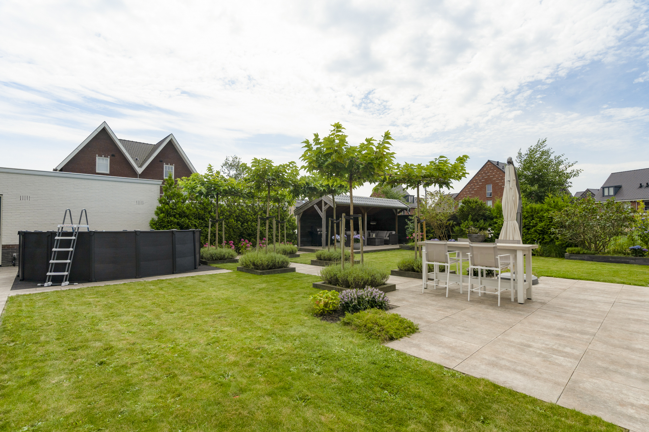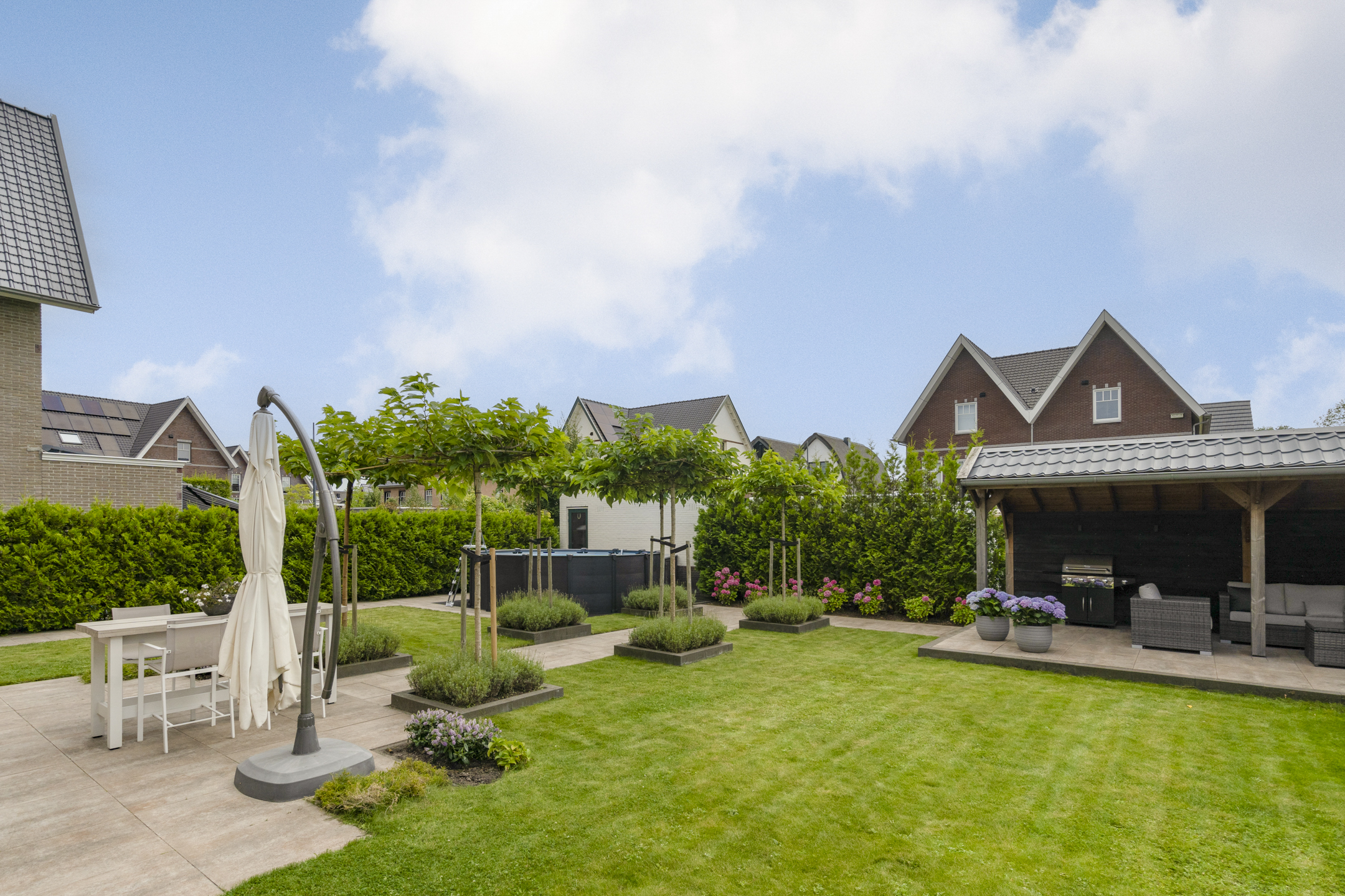• Royale tuin met overkapping van 22 m² en heater;