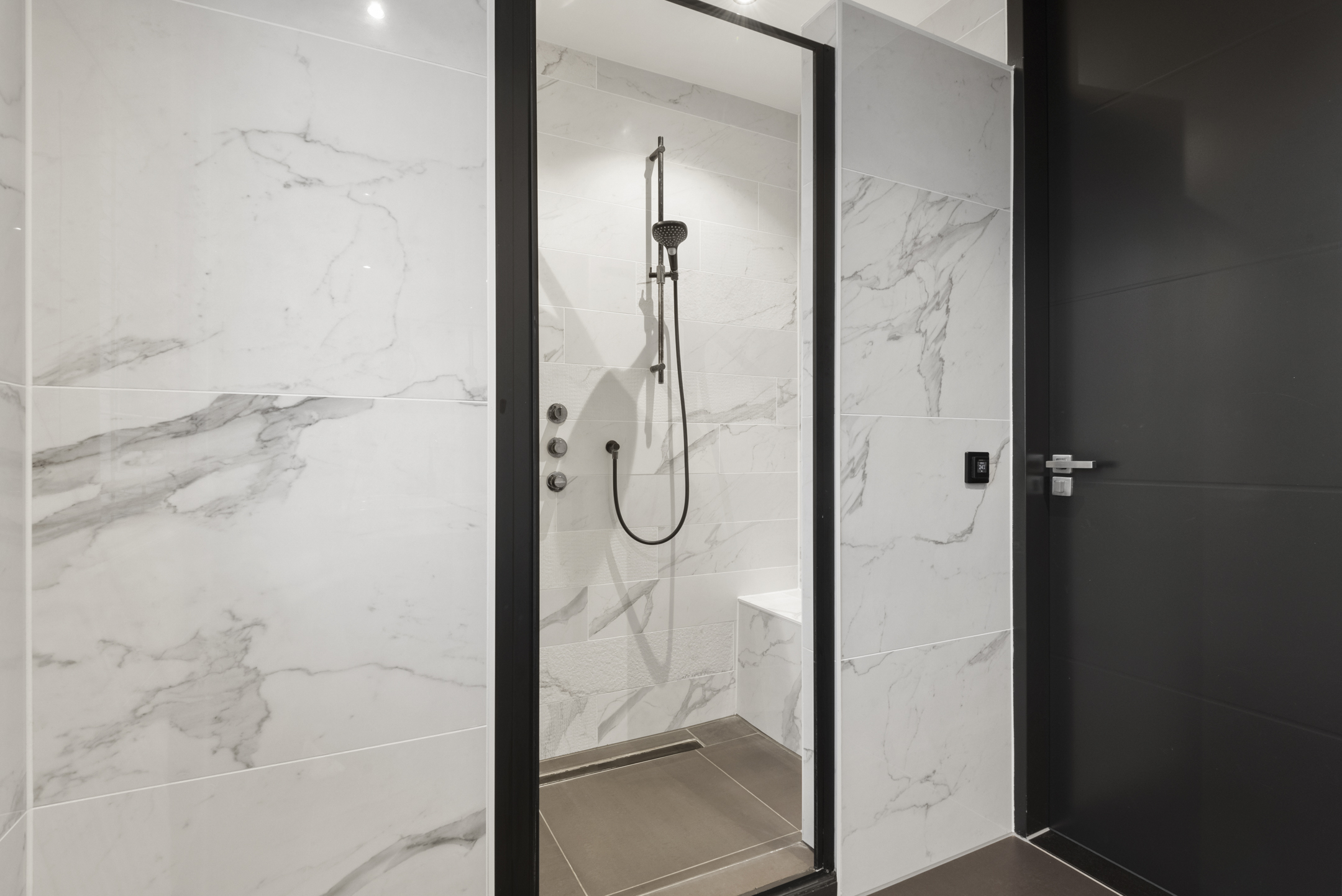 Begane grond; Bij binnenkomst wordt u verwelkomd in een royale hal met garderoberuimte, een stijlvol trappenhuis met leren trapbekleding en een modern toilet. De begane grond is voorzien van een stijlvolle PVC-vloer met vloerverwarming én vloerkoeling. Vanuit de hal kijkt u direct uit op de ruime achtertuin, wat meteen een gevoel van openheid geeft.