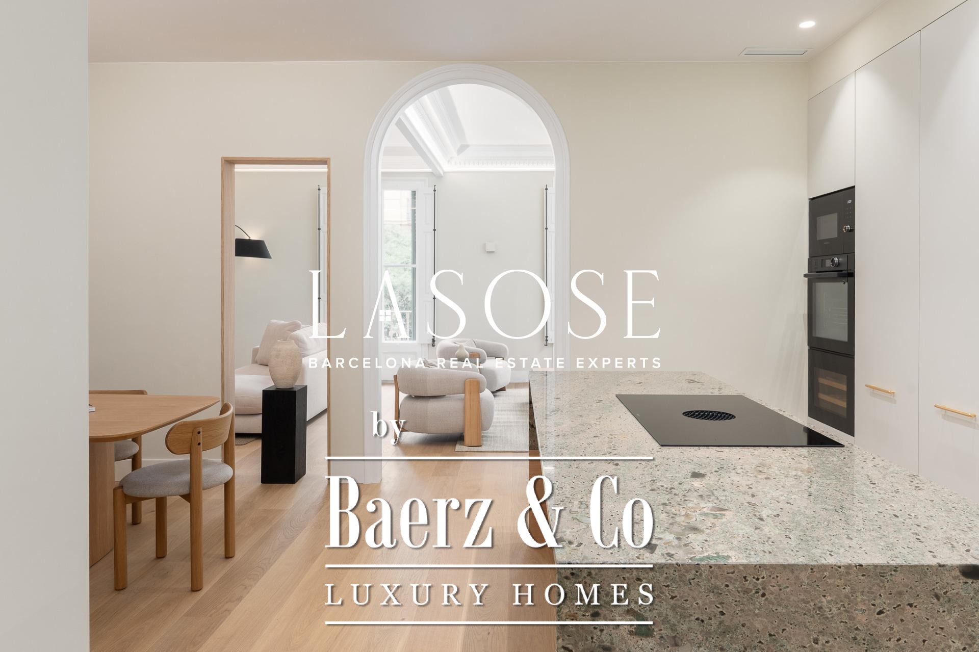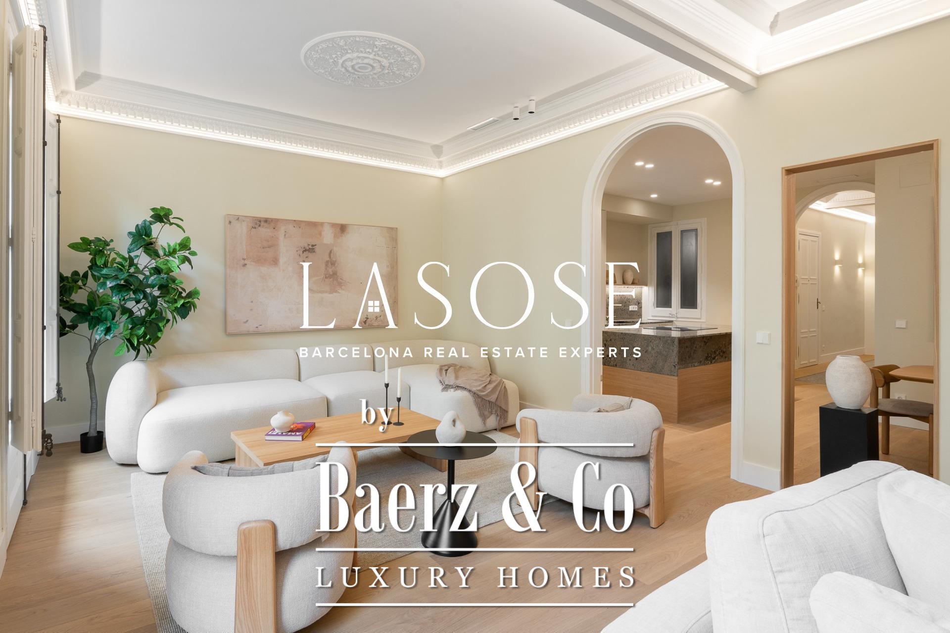 LASOSE is privileged to present this magnificent high-end residence, located in the heart of Barcelona's coveted Eixample district.. . Located in an elegant listed royal estate dating from 1900, this property stands out for its stately architecture, its historical value and its unmistakable character. It is a unique apartment, where the charm of Barcelona's modernism merges with the most demanding comfort and contemporary design.. . Located on a bright 2nd floor with double orientation, the property enjoys abundant natural light throughout the day. Its careful distribution maximizes every corner, offering spacious, functional and stylish spaces.. . The property has three elegant double suites, all with full bathroom, and one of them equipped with an exclusive glazed gallery, perfect as a chill out corner or as a sophisticated workspace.. . The spacious living-dining room is harmoniously integrated with a designer kitchen with central island, equipped with top-of-the-line materials and appliances: polished marble countertop by Levantina, porcelain flooring, and high-end appliances by De Dietrich, Bora and Liebherr (including refrigerator, dishwasher and wine cooler).. . In addition, the dining room - bathed in natural light - can easily be transformed into a fourth bedroom according to the buyer's needs.. . This exclusive home offers luxury finishes such as natural wood floors, original hydraulic tiles and high ceilings decorated with moldings and rosettes, which