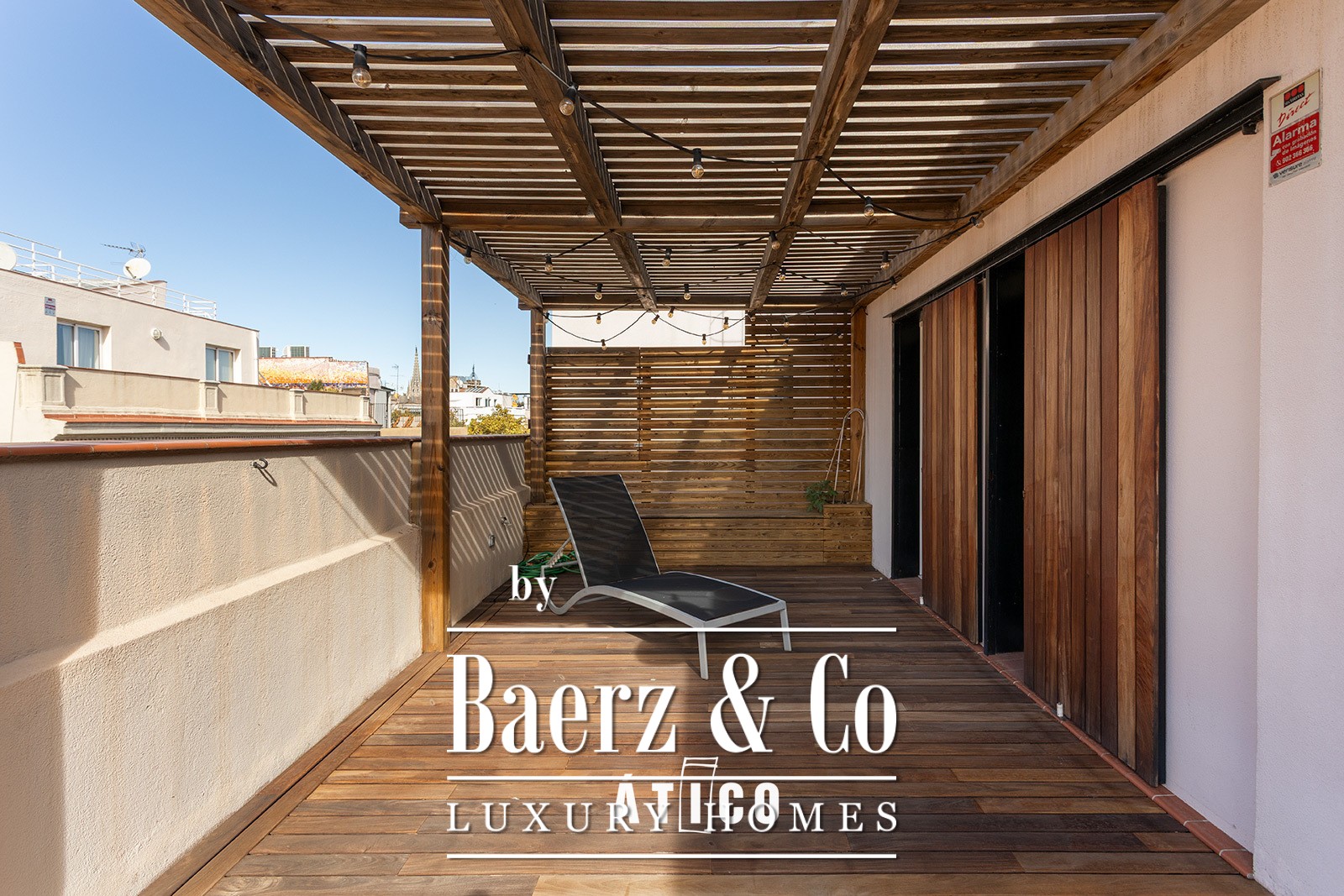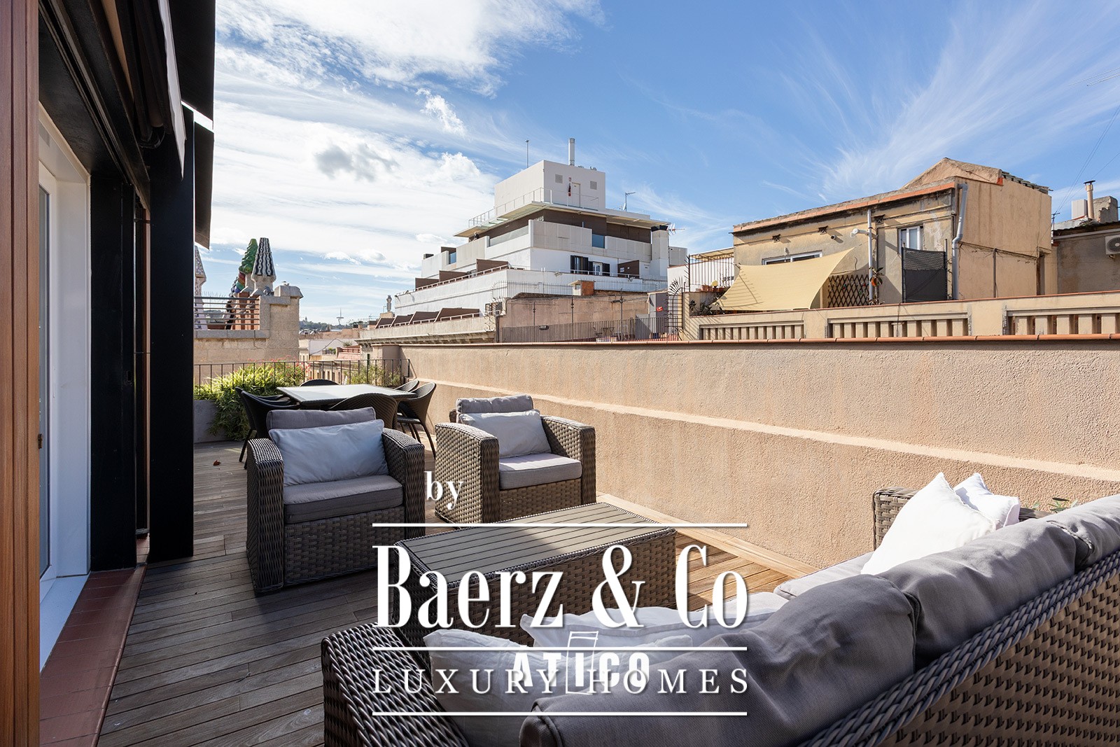 Penthouse Barcelona biedt een woonervaring die wordt gekenmerkt door ruimte, licht en blijvend uitzicht over de stad. Deze gemeubileerde woning beschikt over 105 m² aan modern interieur, verrijkt met een terras van 80 m² dat het stadscentrum omlijst en uitnodigt tot ontspannen ochtenden of intieme zomerdiners. Dankzij de doordachte oriëntatie profiteert het penthouse van overvloedig daglicht, terwijl het open terras het ritme van de bruisende stad omarmt.