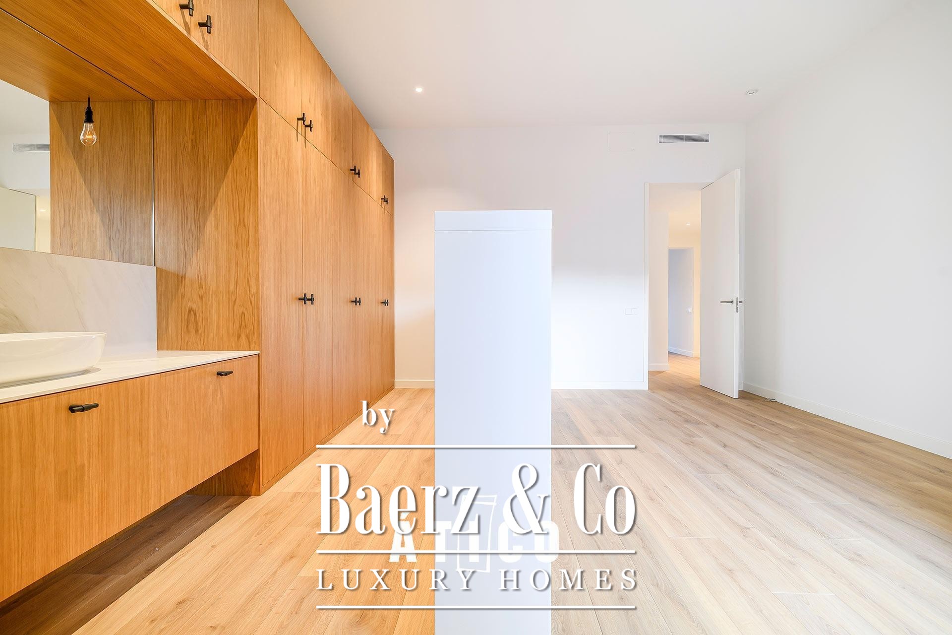 Op de bovenste verdieping bevinden zich een slaapkamer, een veelzijdige multifunctionele ruimte die ideaal is voor werk of ontspanning, en een complete badkamer. Het royale terras van 38,85 m² verlengt het wonen naar buiten; perfect geschikt voor openluchtbijeenkomsten of rustige momenten onder de stadse hemel. Drie slaapkamers en drie badkamers staan borg voor een aangename balans tussen comfort en privacy, terwijl hoogwaardige materialen en een onberispelijke afwerking het vakmanschap in elke ruimte benadrukken. Ook de keuken is zorgvuldig vormgegeven en biedt veel opbergruimte en een evenwichtige functie in het dagelijks leven.