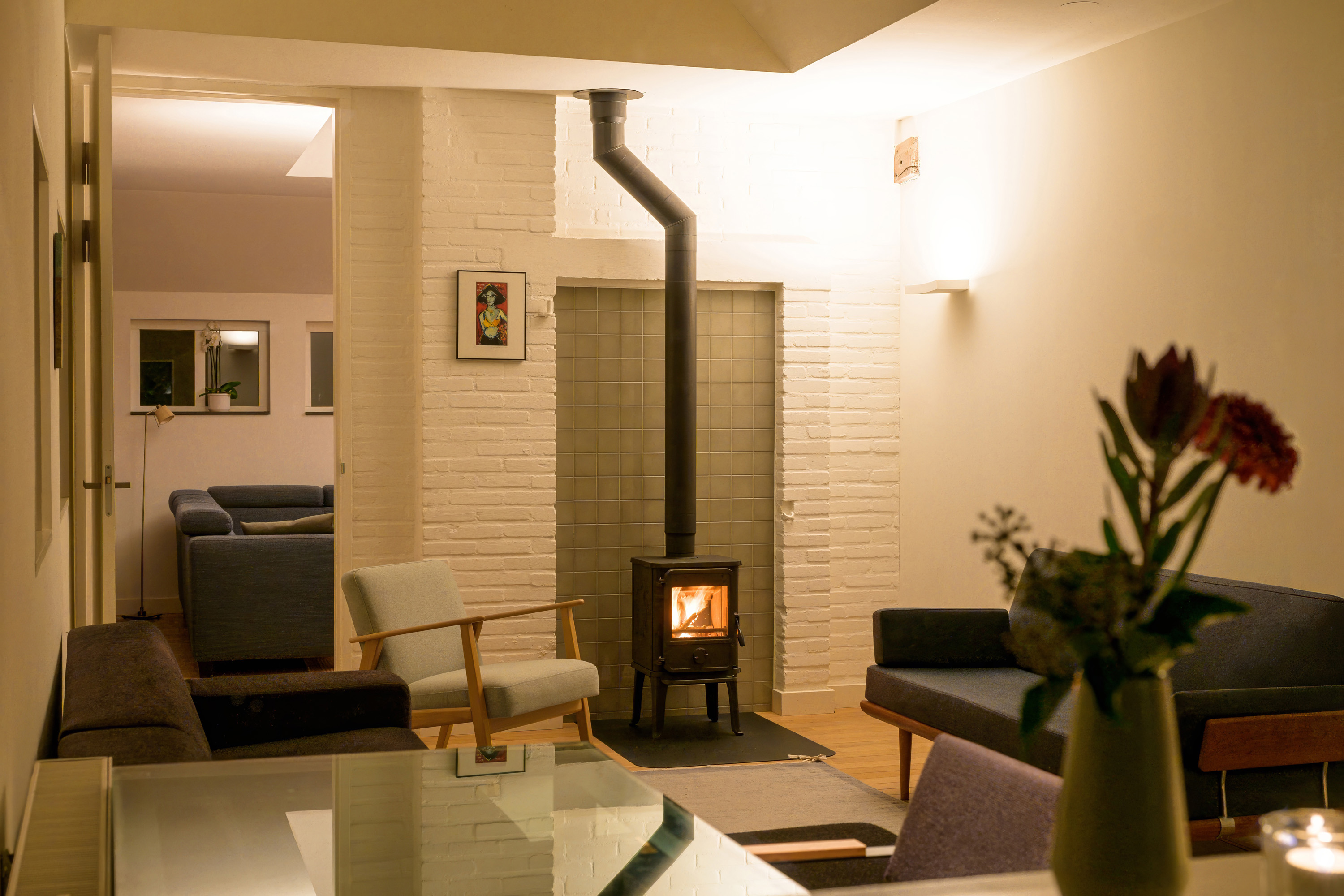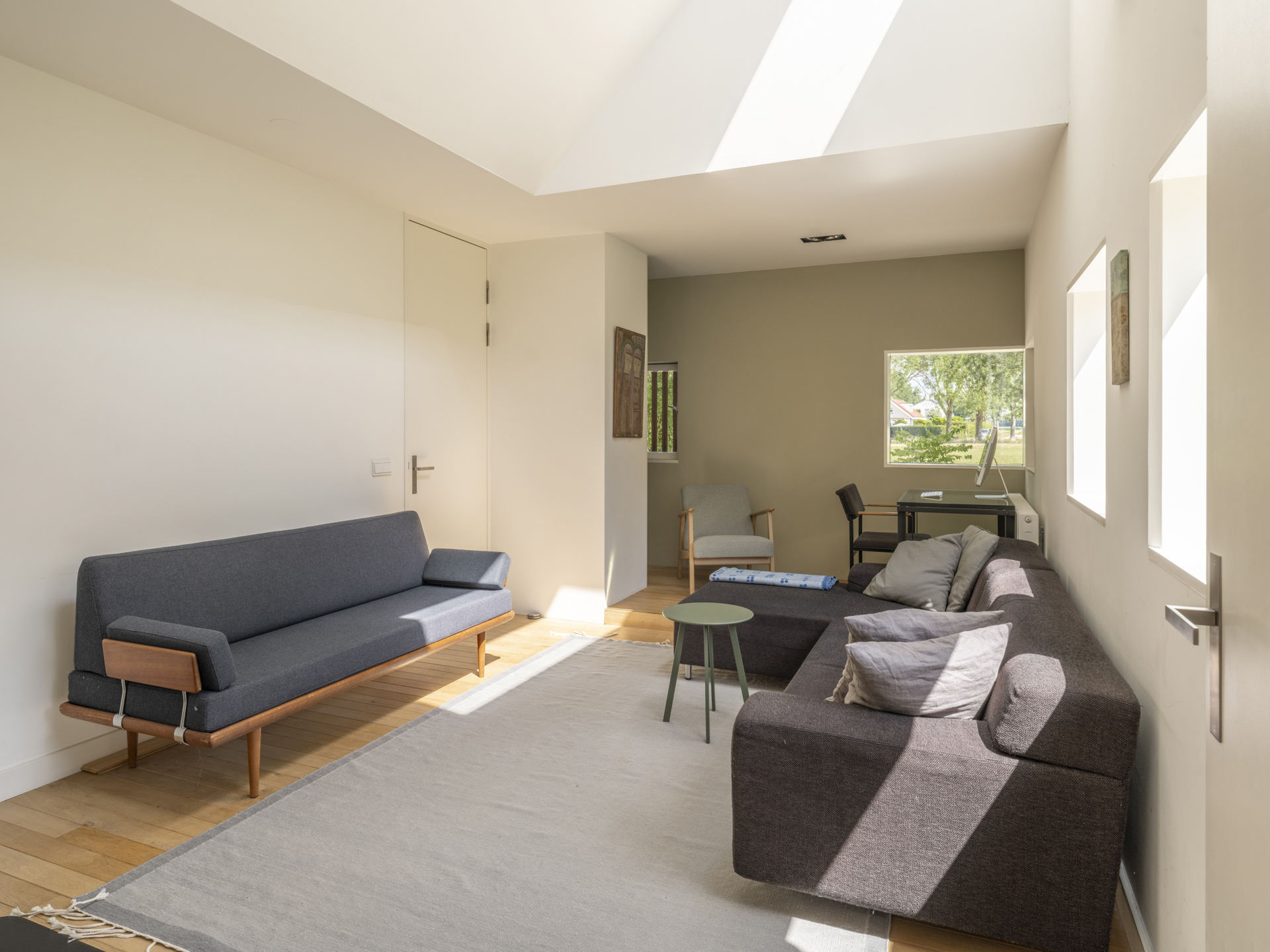 Een hoge deur verbindt de woonkamer met de (tweede) zitkamer.